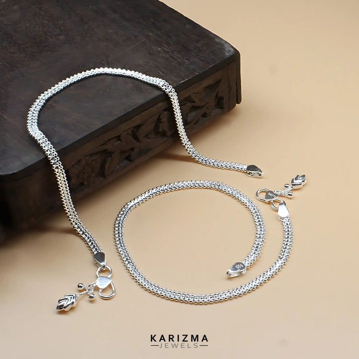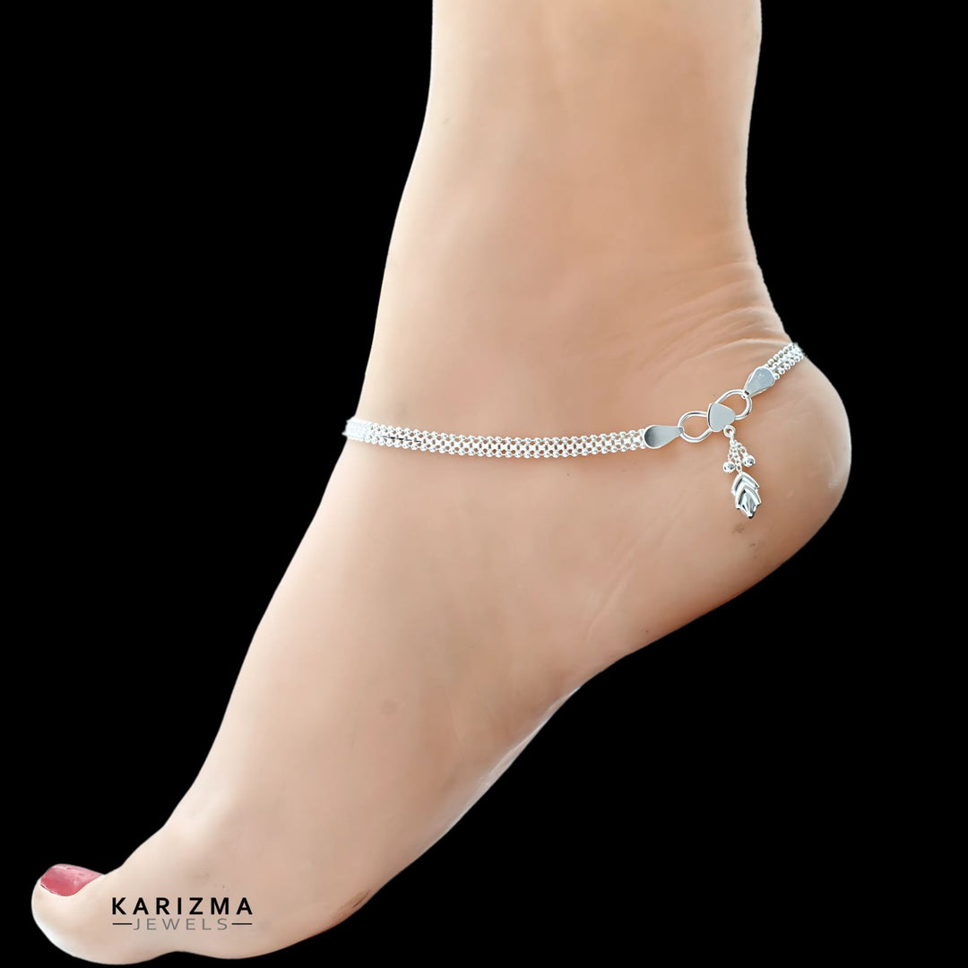 Elevate any outfit with our 925 Sterling Silver Indian Anklets. Made for women, these anklets are a perfect gifting option. Crafted with premium quality silver, these anklets add a touch of elegance and style to any look. Treat yourself or a loved one to these versatile and beautiful anklets.