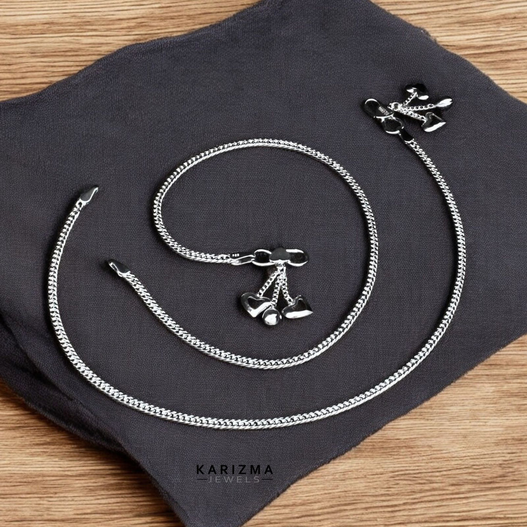 925 Sterling Silver Indian women pretty gifts Anklets Pair 10.3"