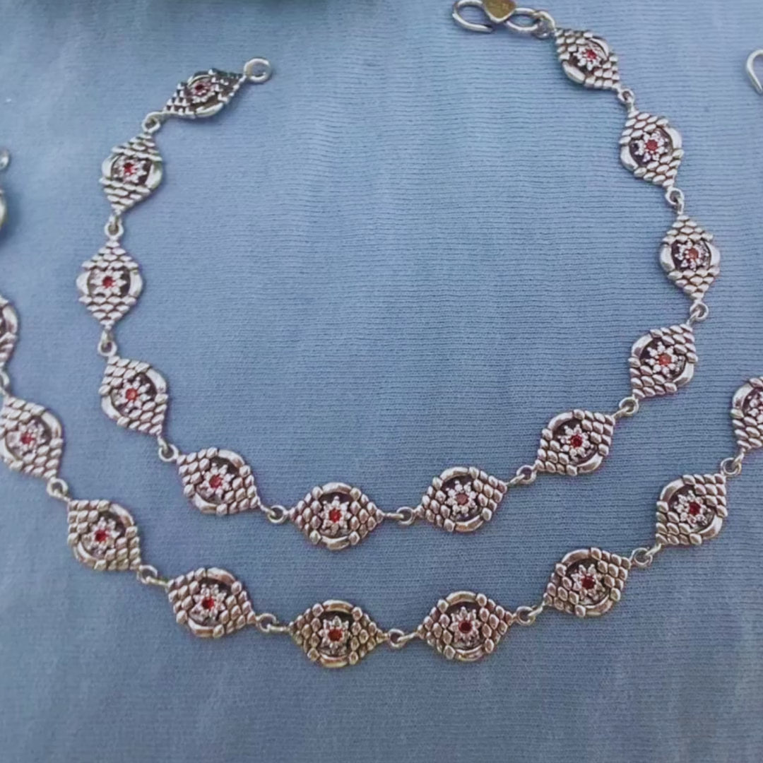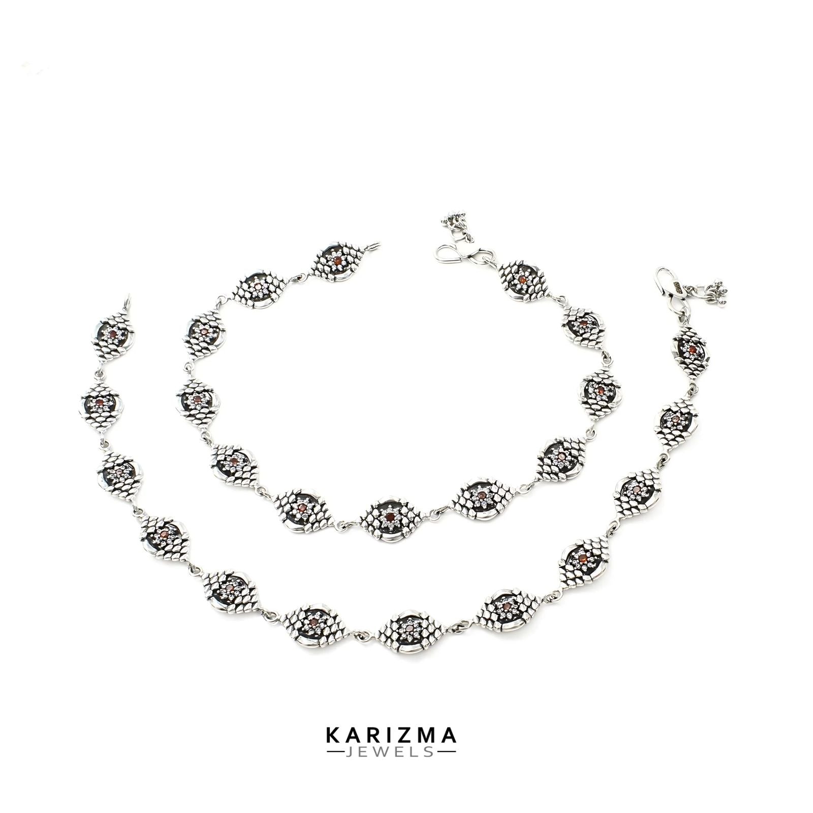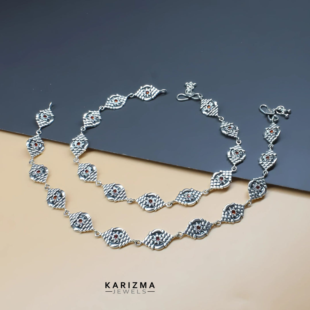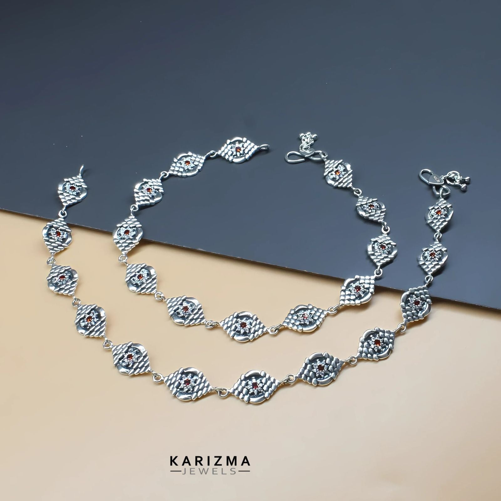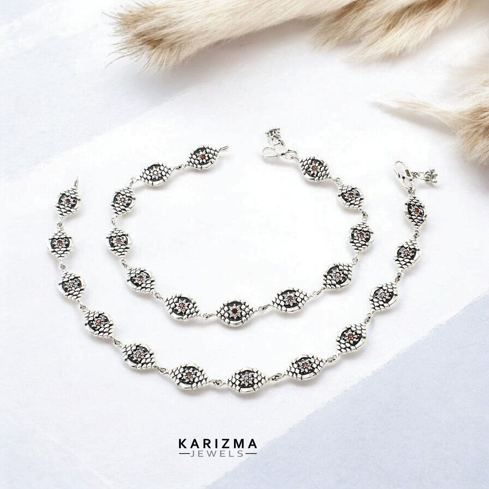 Elevate your beach style with these exquisite 925 Sterling Silver Anklets. Featuring a stunning combination of orange and white cubic zirconia stones set in an elegant oxidized finish, these divine anklets add a touch of bohemian charm to any outfit. Perfectly sized at 10.2 inches, they're designed for comfortable all-day wear while making a statement. The perfect accessory for beach outings or summer festivities.