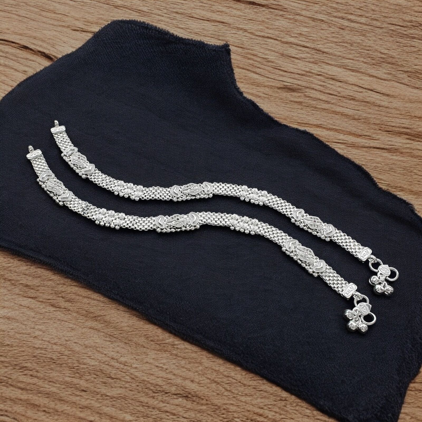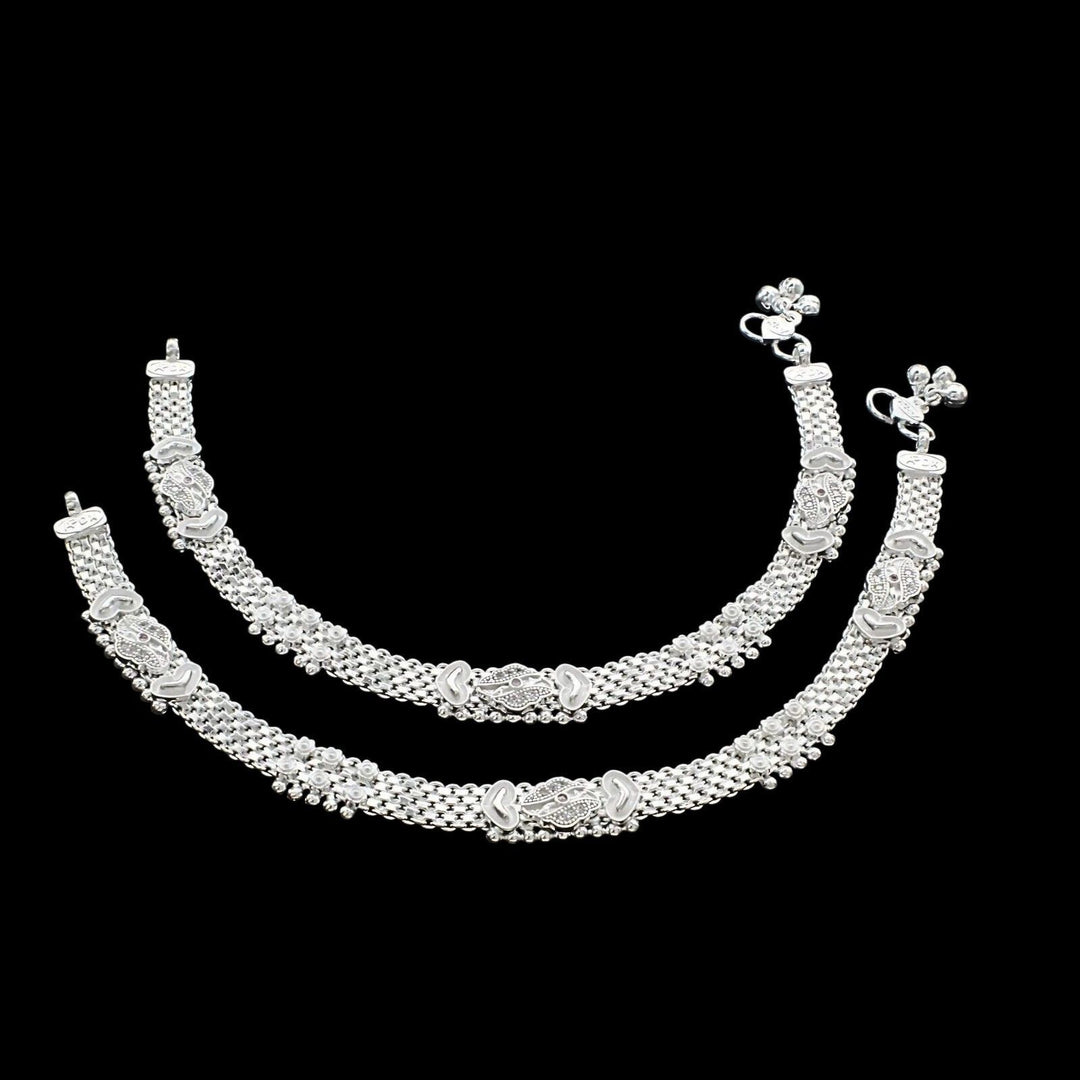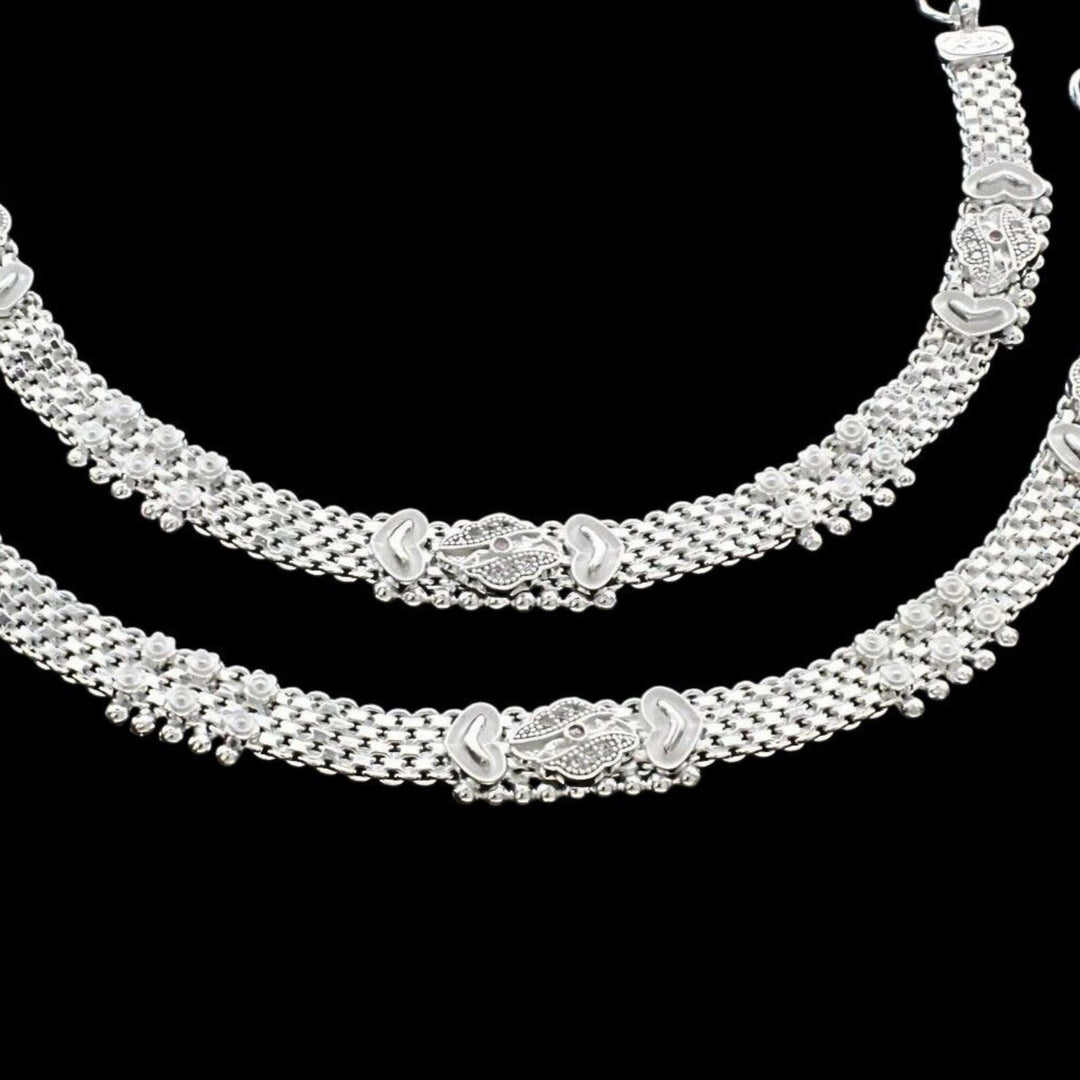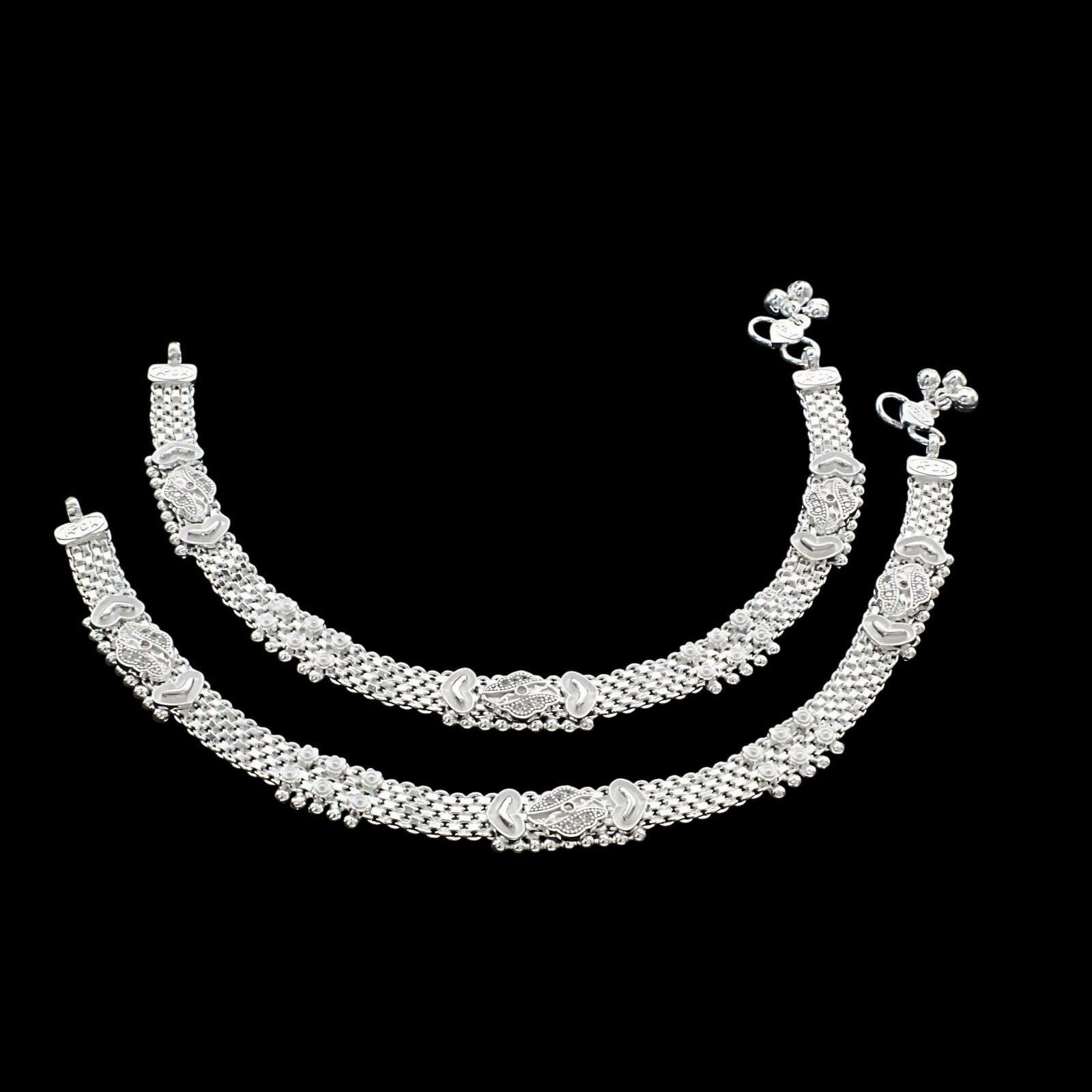 Adorn your feet with this exquisite traditional Indian anklet pair crafted from genuine Sterling Silver. Featuring delicate pink CZ stones, these 10.3" anklets add a touch of elegance to any outfit. Perfect for special occasions or everyday wear, these authentic silver anklets celebrate timeless beauty while ensuring comfortable fit and lasting quality.