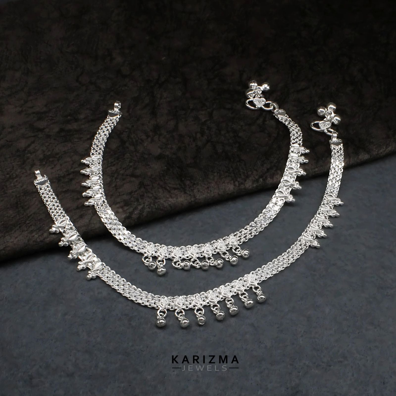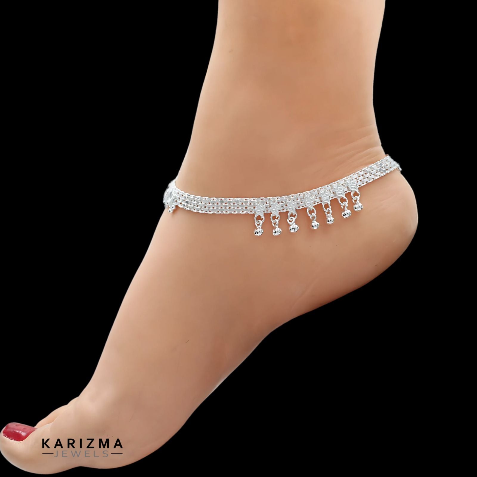 Elevate your style with our Real Sterling Silver Indian cultural design Anklet! Crafted with high quality materials, this 10.3" ankle bracelet adds a touch of culture and elegance to any outfit. Feel confident and stylish with this unique and stunning anklet.