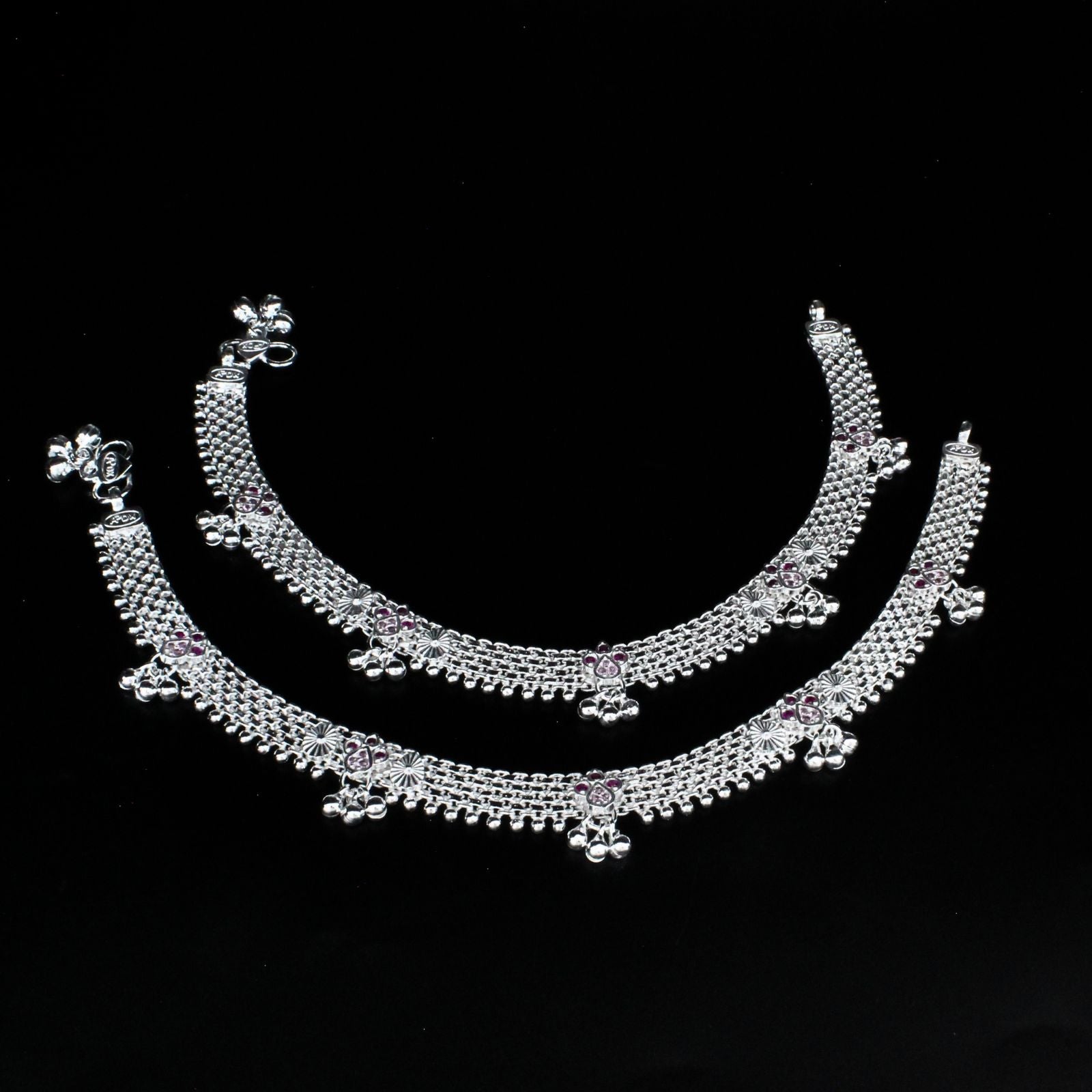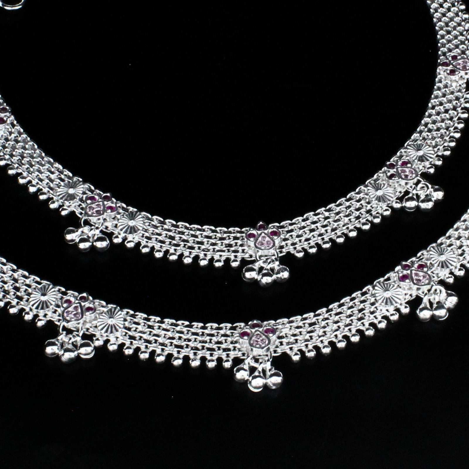 Keep your style divine with this real sterling silver Indian women's anklet. Adorned with pink CZ stones, this 10.3" anklet adds a touch of elegance to any outfit. Comfortable and lightweight, it's the perfect accessory for any occasion. Show off your unique style and elevate your look with this divine anklet.