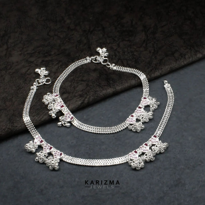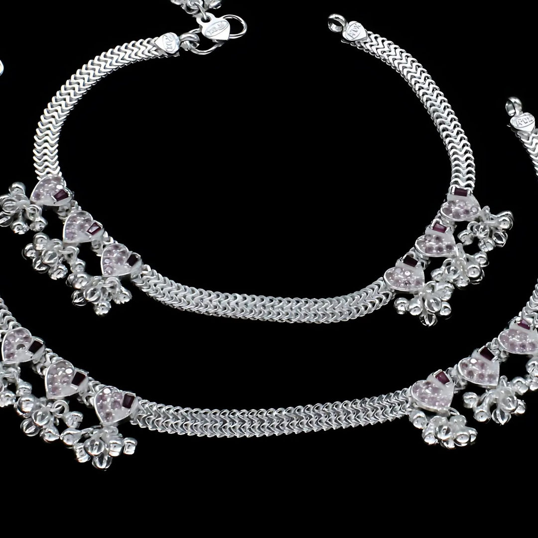 Complete your bridal look with our gorgeous Real Sterling Silver Indian women Pink CZ anklet. Made with high-quality materials, this ankle bracelet adds a touch of elegance and charm to your outfit. The perfect accessory for your special day, it measures 10.3 inches, and is sure to make you feel beautiful and confident.