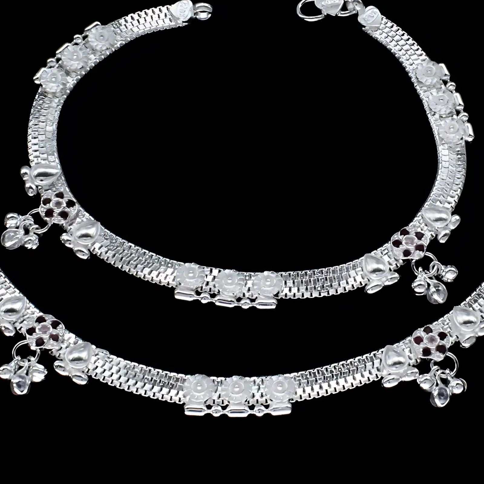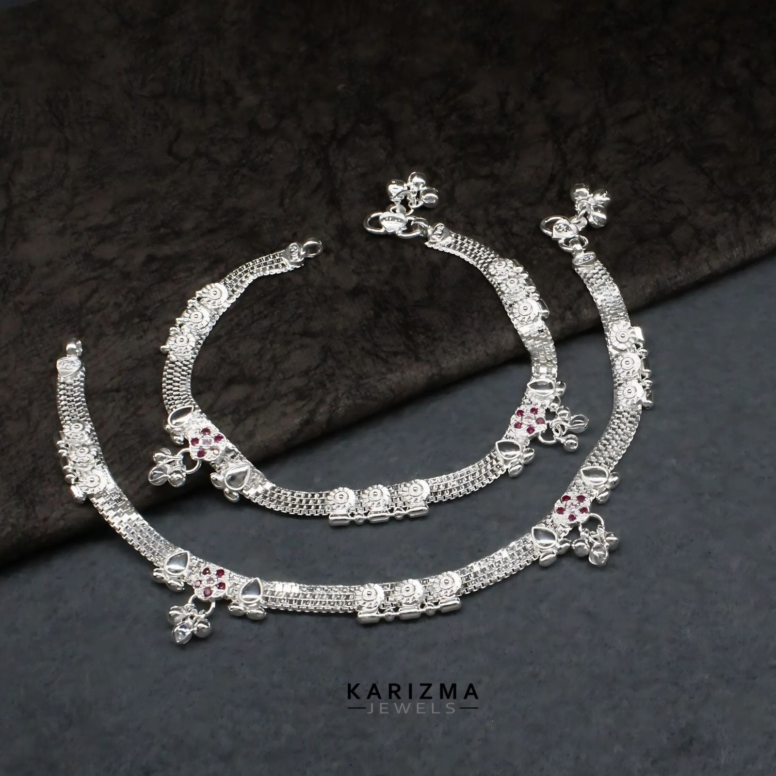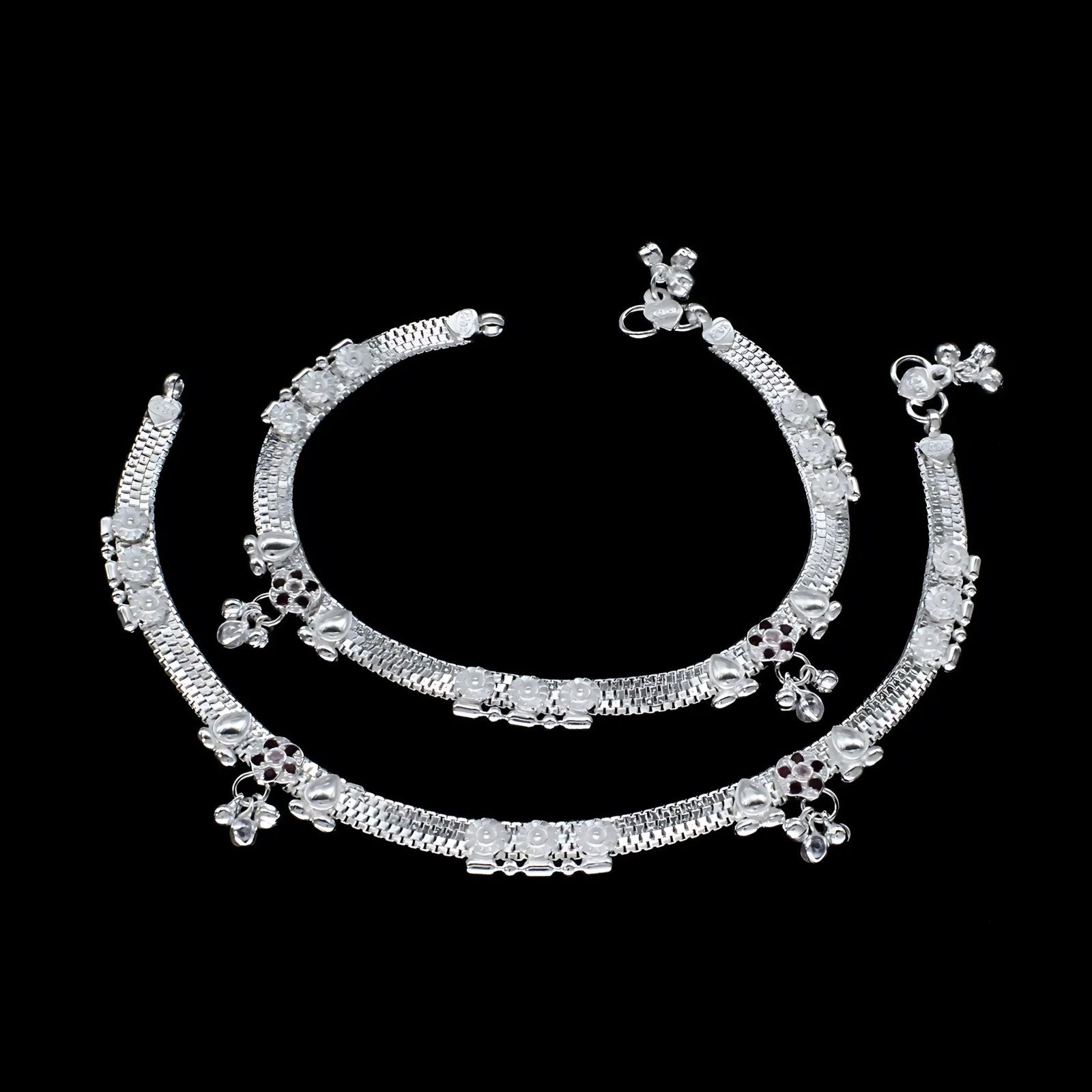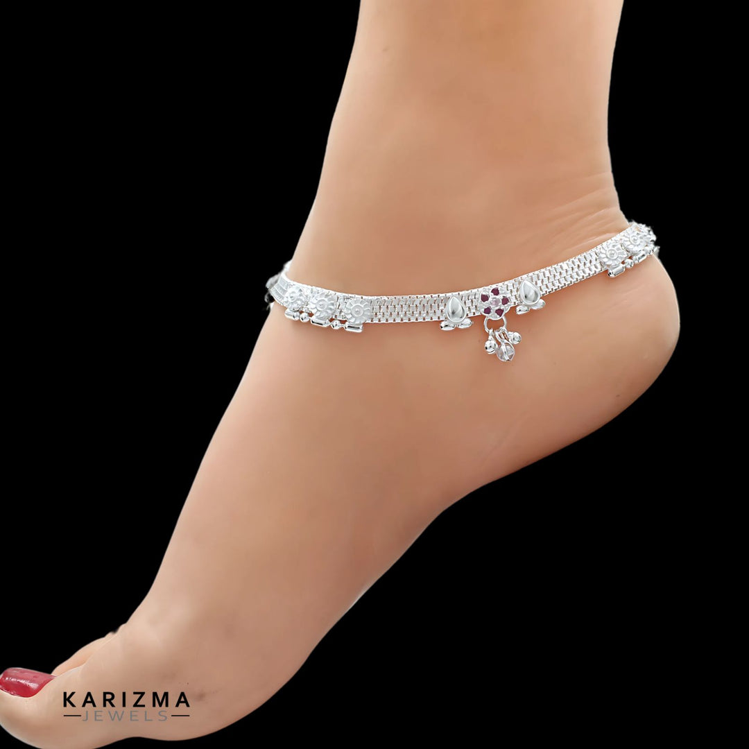 Enhance your style with this beautiful sterling silver Indian anklet. With a delicate and elegant design, and the stunning pink CZ stones, this anklet is the perfect accessory for weddings or any special occasion. Measuring at 10.3 inches, it is sure to add a touch of glamour to your outfit.