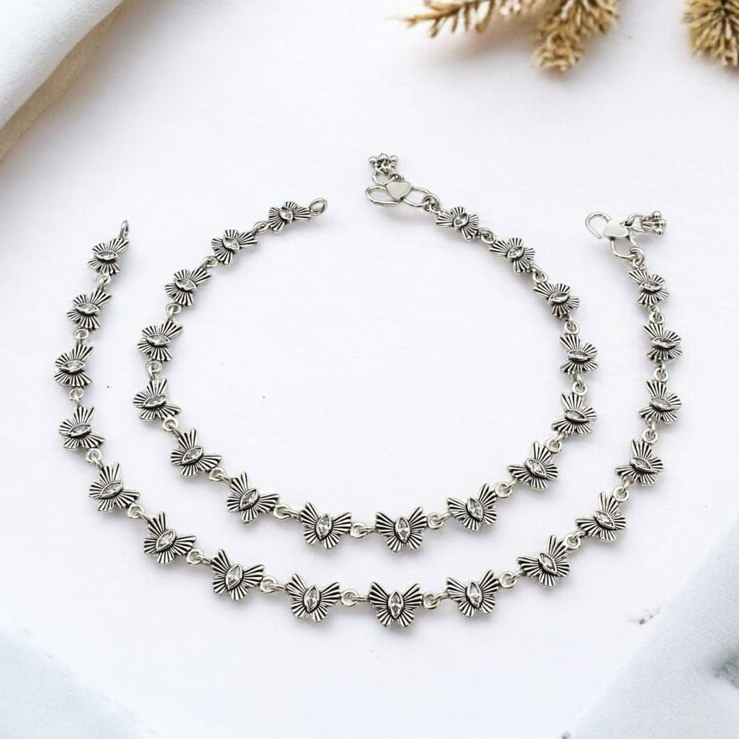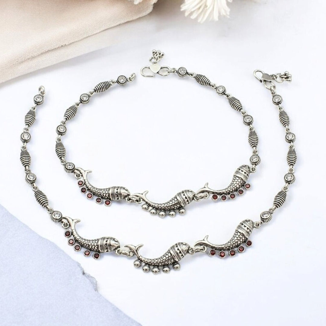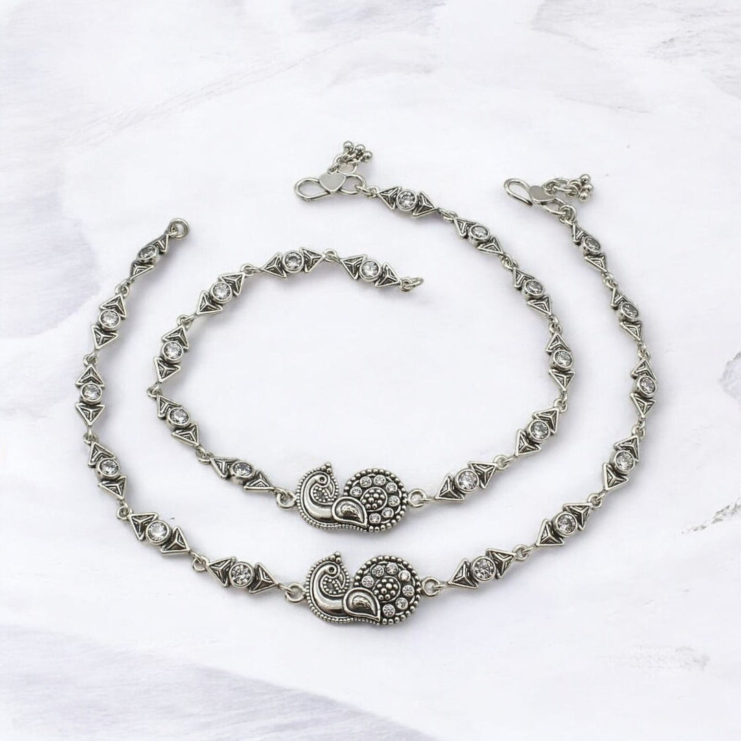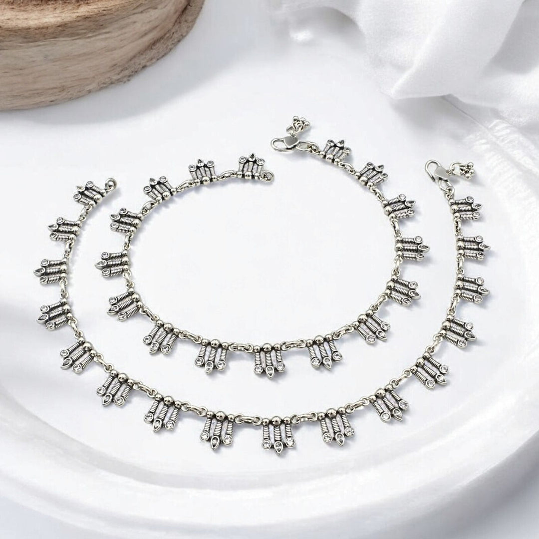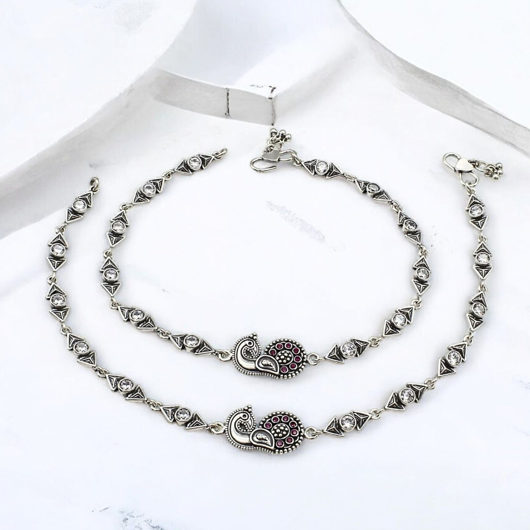 Indian silver Anklets or Ankle Bracelets made in India with traditional and ethnic Indian designs are very famous around the World. As it relates to Indian culture. Every piece of Indian Jewelry Ankle bracelets for women is made keeping in mind the facts of rich Indian culture.