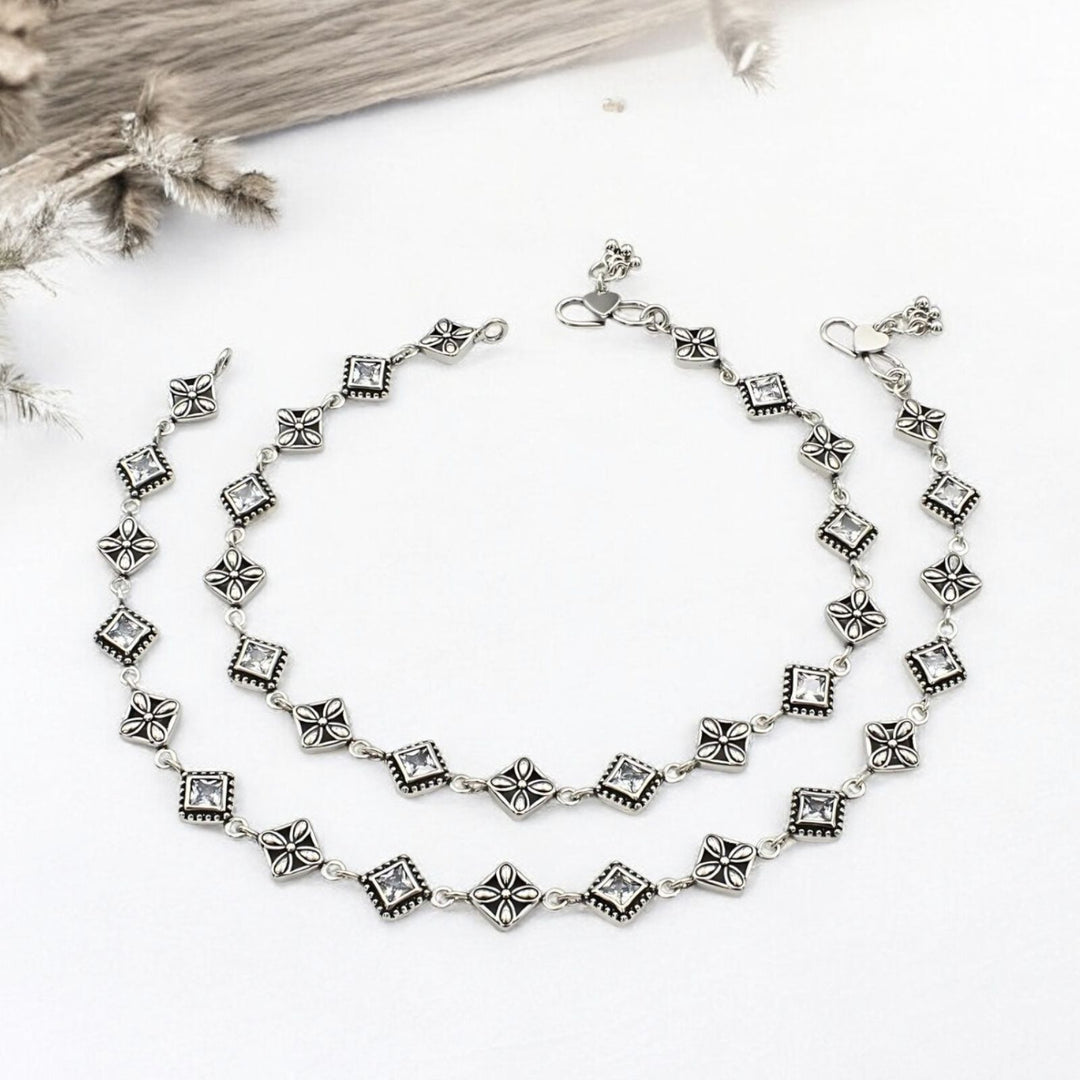 Silver Anklets for Women - Silver Anklets is uniquely positioned in Indian culture. These are not just a piece of ornament but also a fashion statement and are loved by every girl & woman. If you are also a woman who wants to adore their feet with a graceful & stylish ankle chain or a man looking for a gorgeous jewelry gift for that special woman, your search ends here at Karizma Jewels. Explore our stunning Sterling Silver Anklets For Women collection where every anklet is a true piece of art & timeless elegance. Stay tuned!