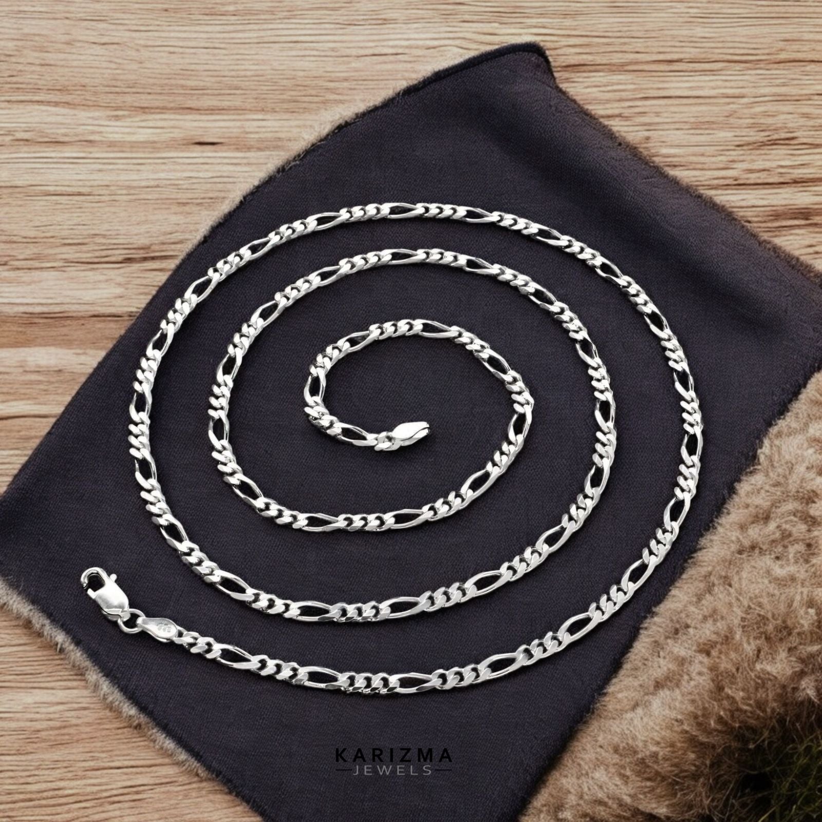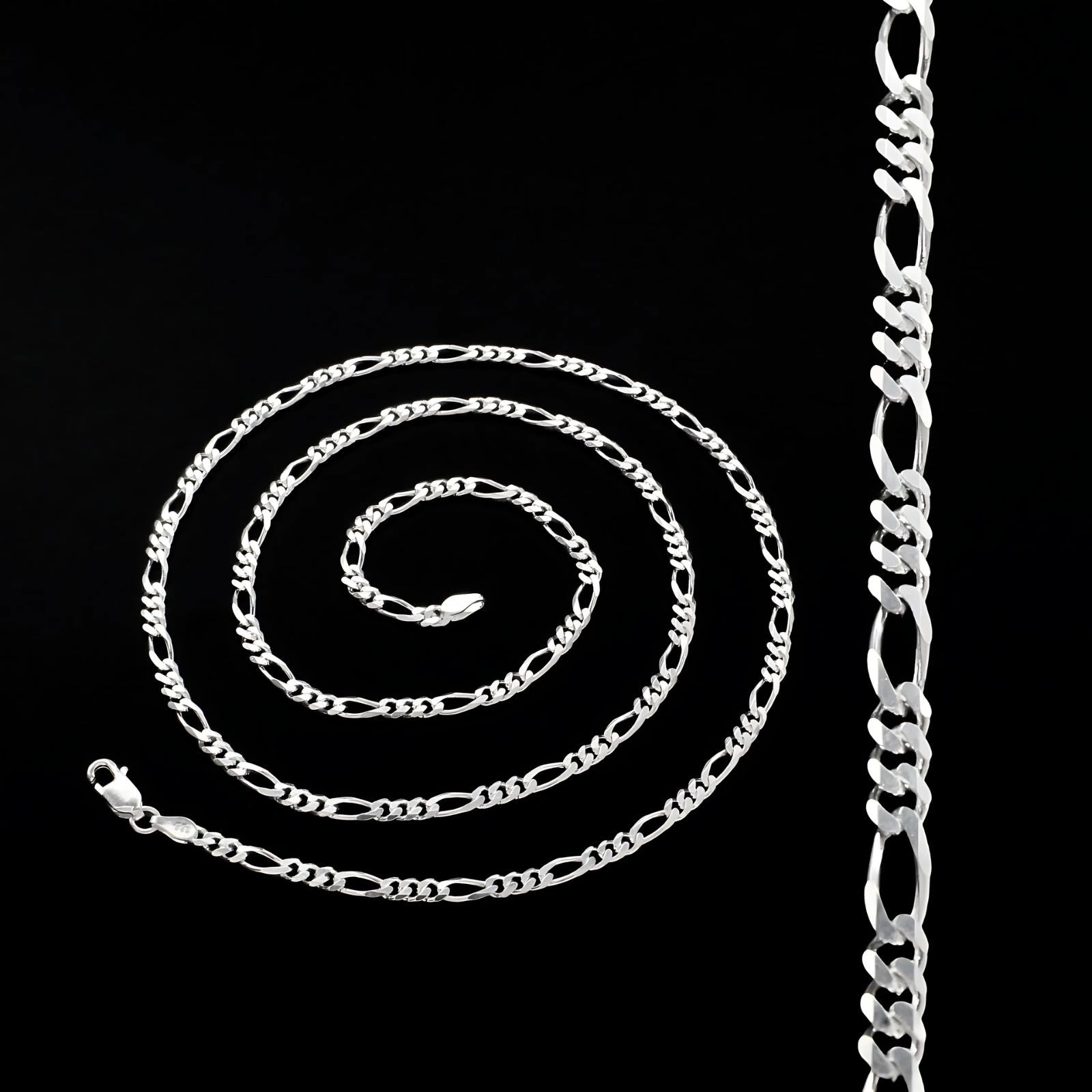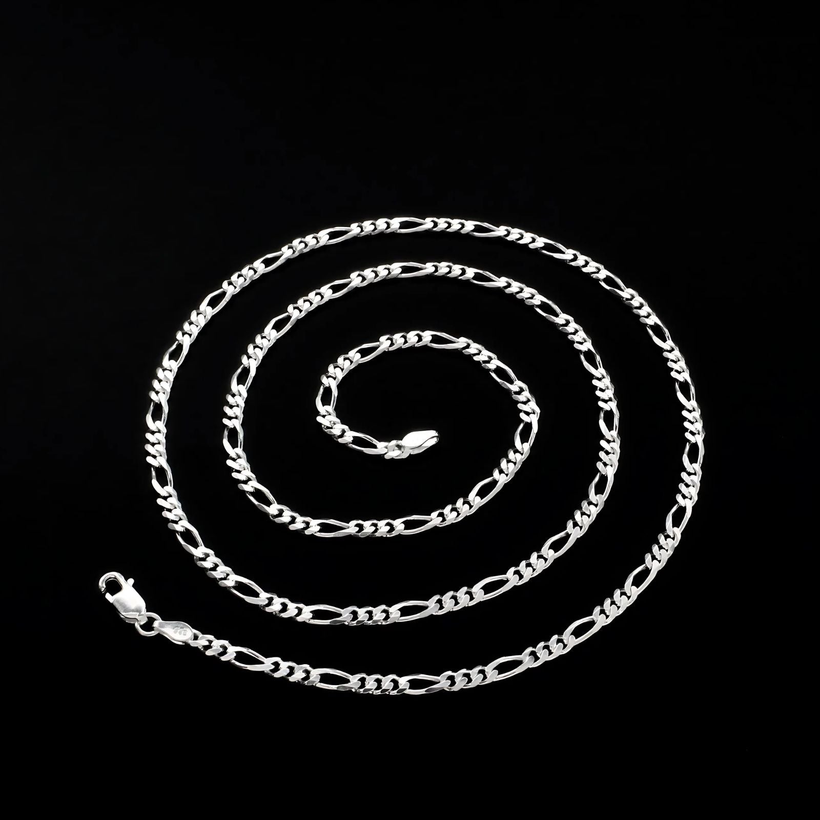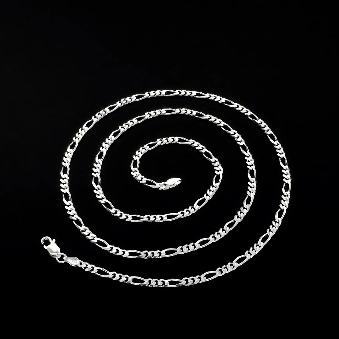 This sophisticated 3.3 MM Figaro style chain combines timeless design with premium quality. Crafted from genuine 925 Sterling Silver, the classic pattern of alternating links creates visual interest and versatile appeal for all genders. The generous 24-inch length offers elegant draping that works beautifully with various necklines and outfits. Durable enough for everyday wear while maintaining its brilliant shine, this authentic sterling silver chain makes a refined statement that complements your personal style.