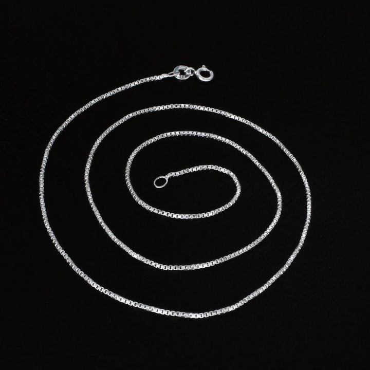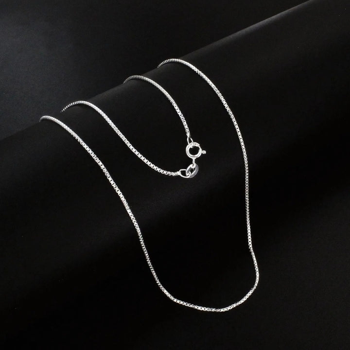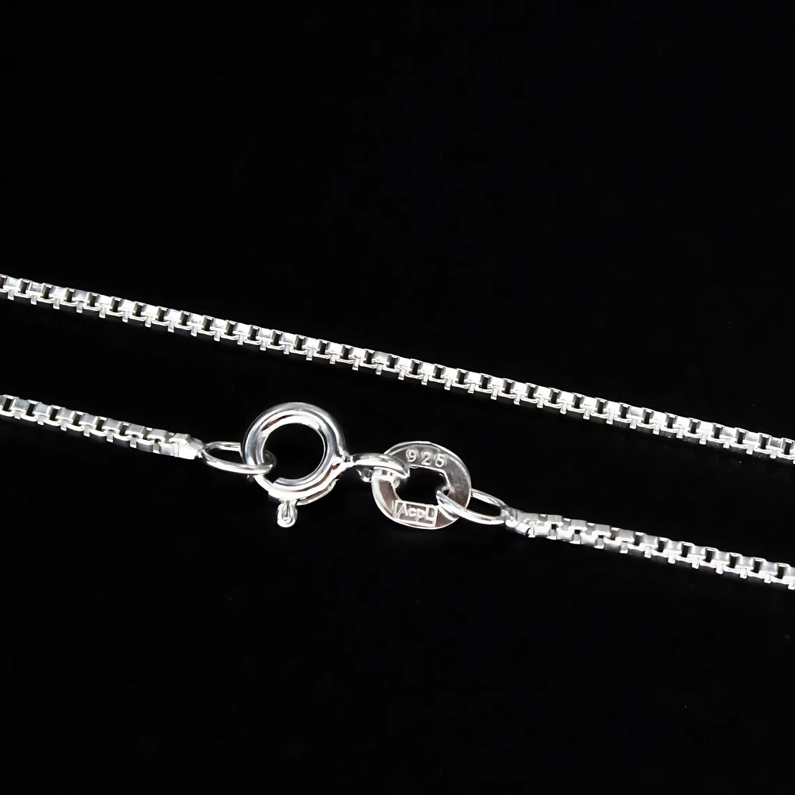 This 18-inch neck chain crafted from 925 sterling silver features a sleek box design, making it a durable and stylish choice for everyday wear. Its classic look complements any outfit, while the sturdy construction ensures long-lasting use, providing you with a reliable and elegant accessory for daily wear.