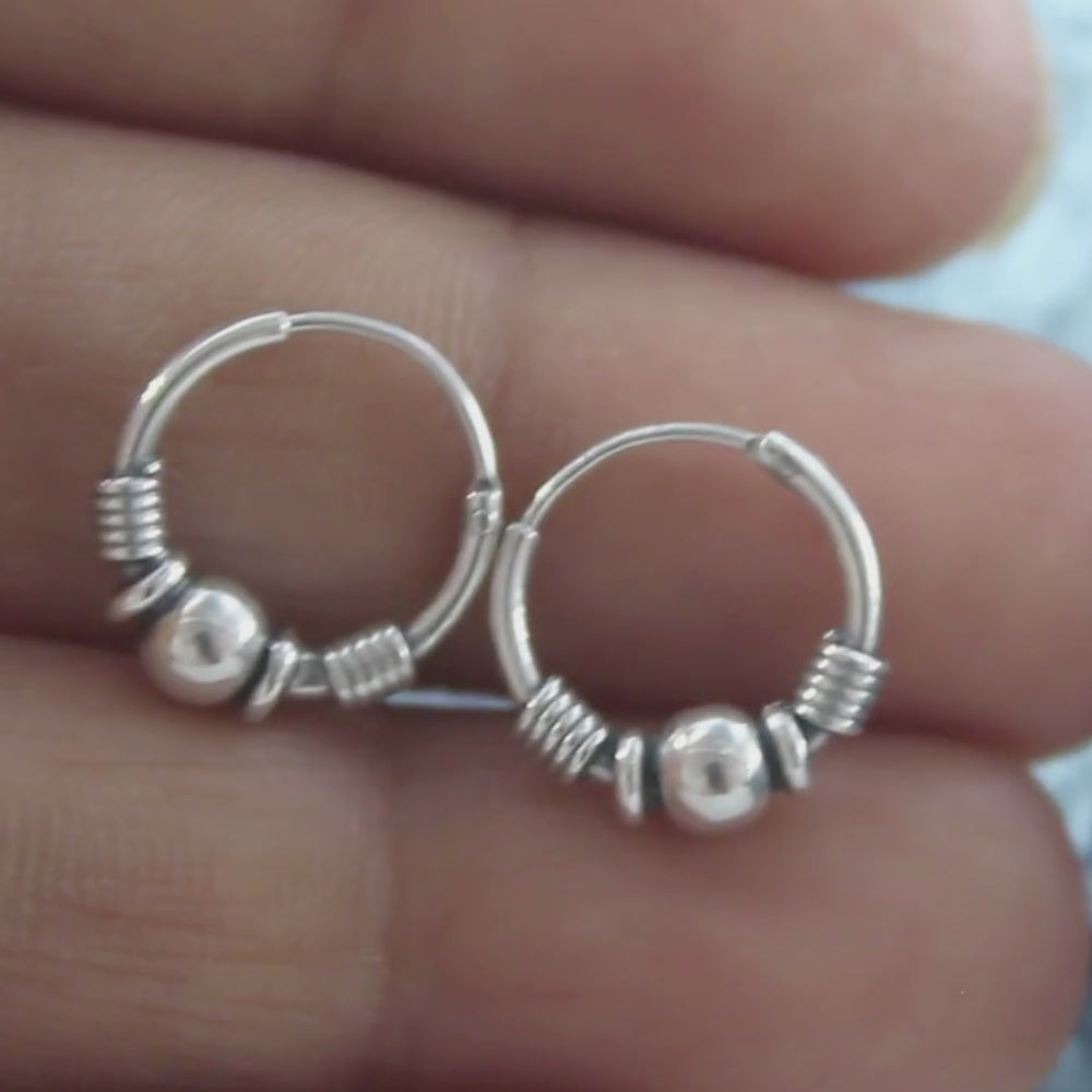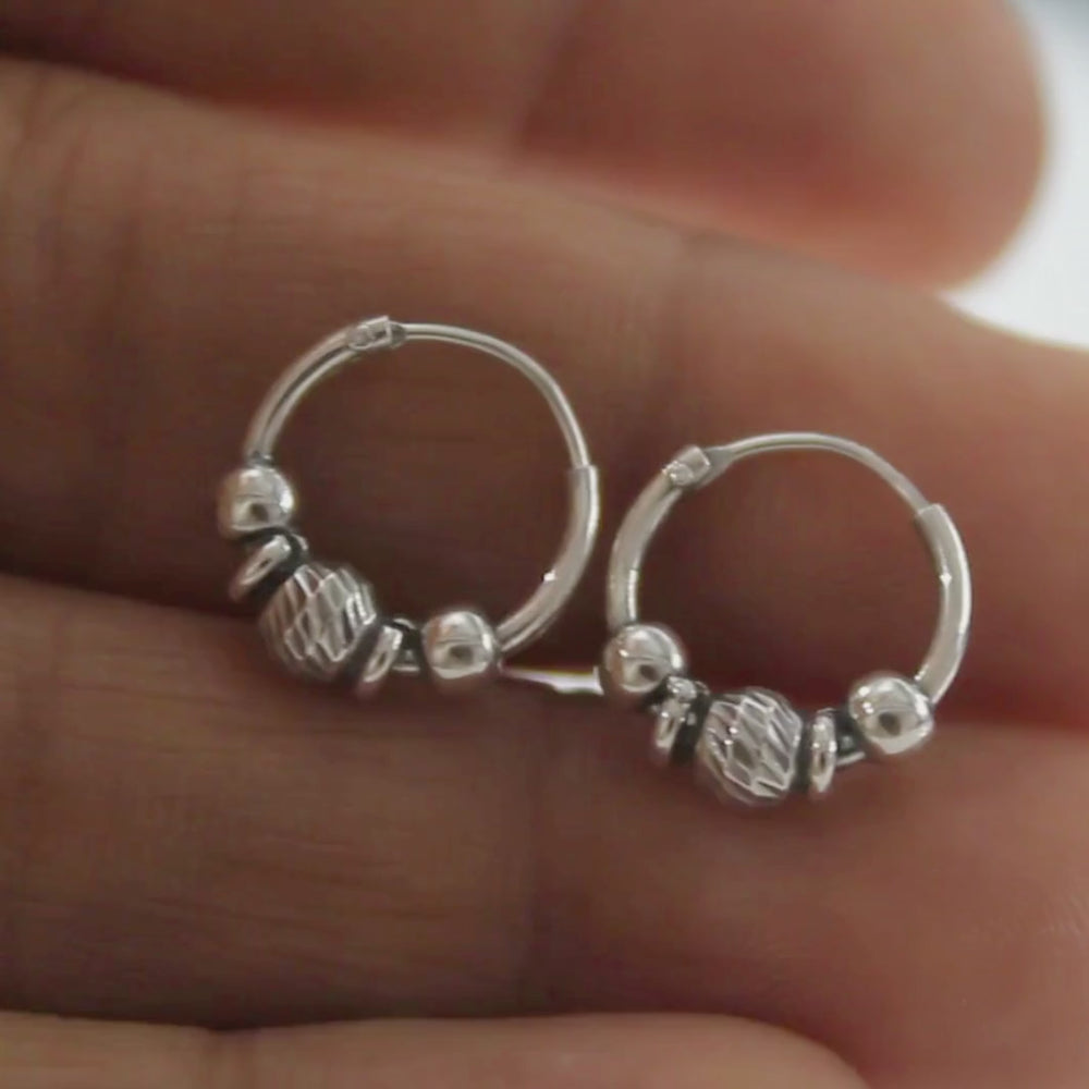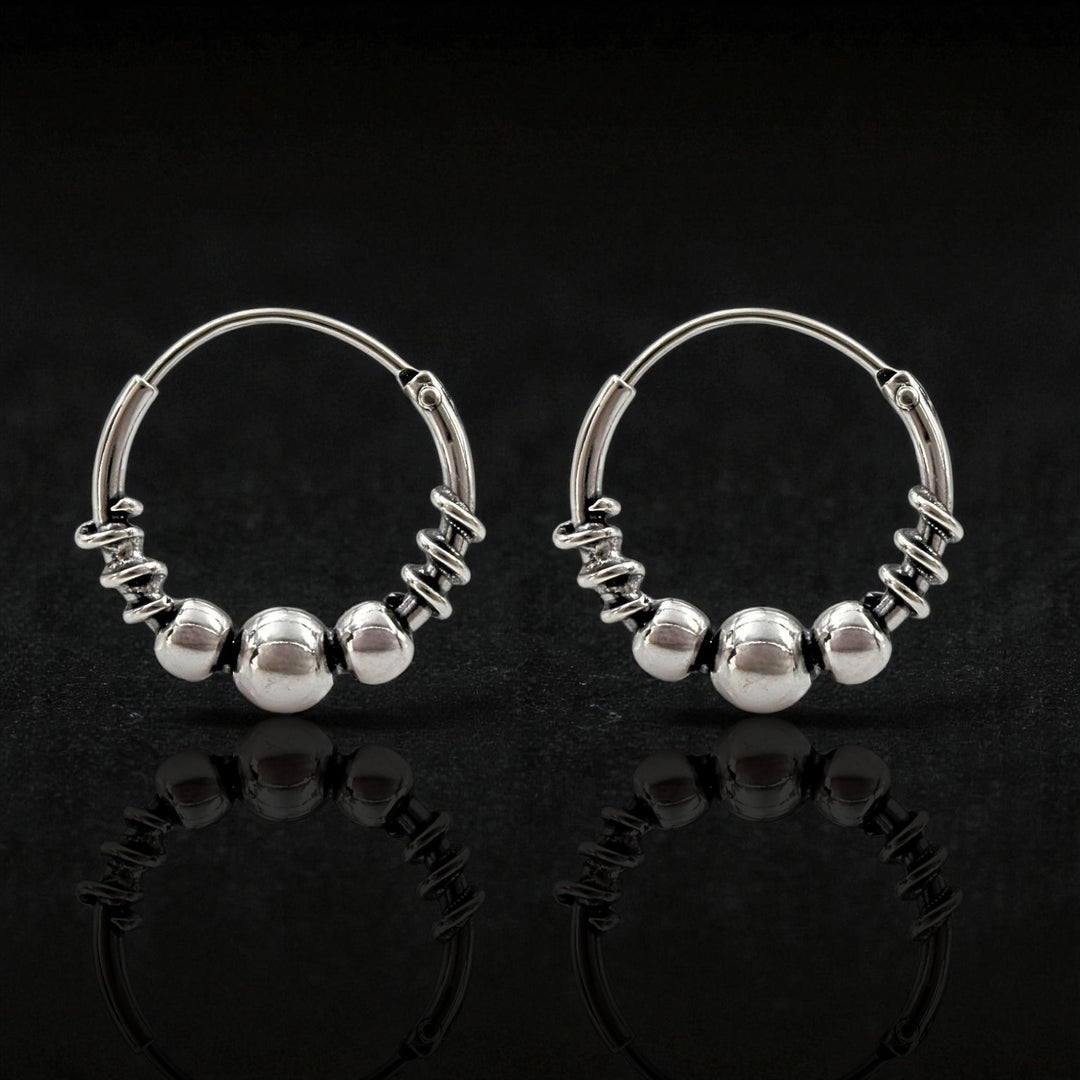 Cute Indian Tribal Real Tribal Sterling Silver Hoop Earrings |