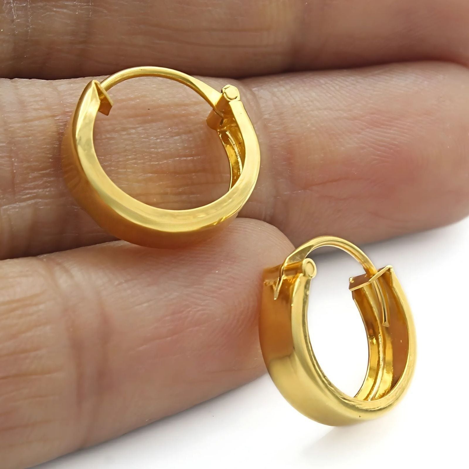 Elevate your look with these solid 18K real gold earrings for men, designed in a bold yet minimalist classic hoop style. Crafted from high-purity gold, these earrings feature a smooth, high-polish finish and a thick band that adds a masculine touch while maintaining timeless elegance.