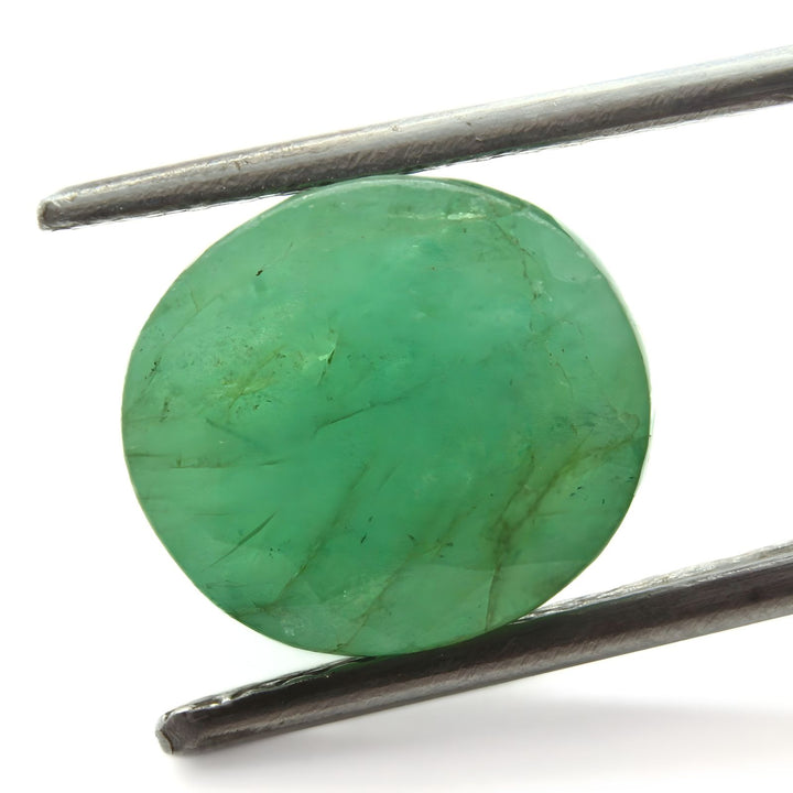 This 6.9Ct natural green emerald, beautifully shaped in an oval cut, showcases the rich, vibrant hues characteristic of Panna gemstones. Its substantial size and clarity make it an exceptional choice for those seeking a meaningful and elegant addition to their jewelry collection. This emerald embodies natural beauty and offers a timeless appeal, perfect for celebrating special moments or enhancing your everyday style with a touch of genuine elegance.