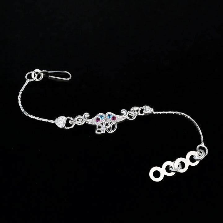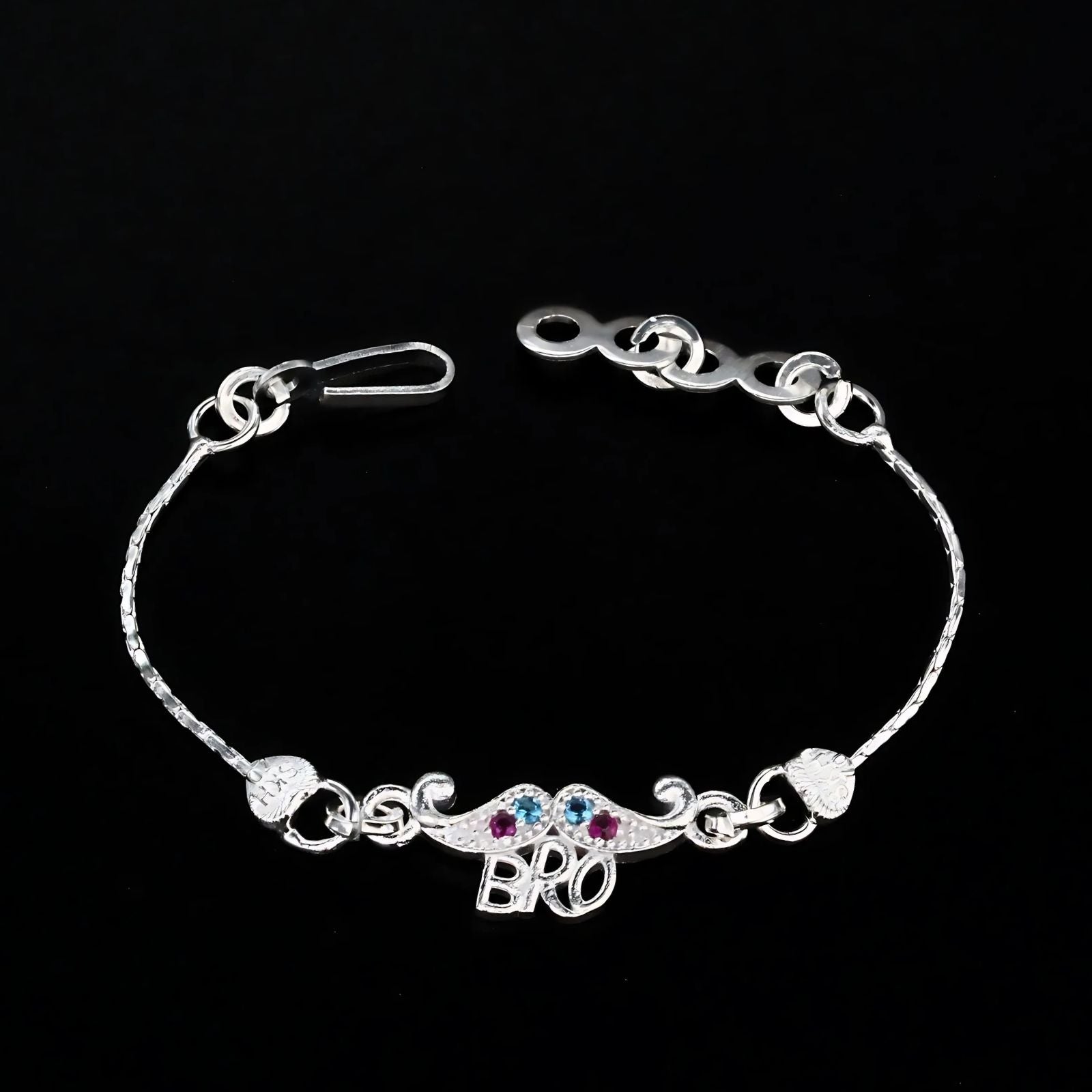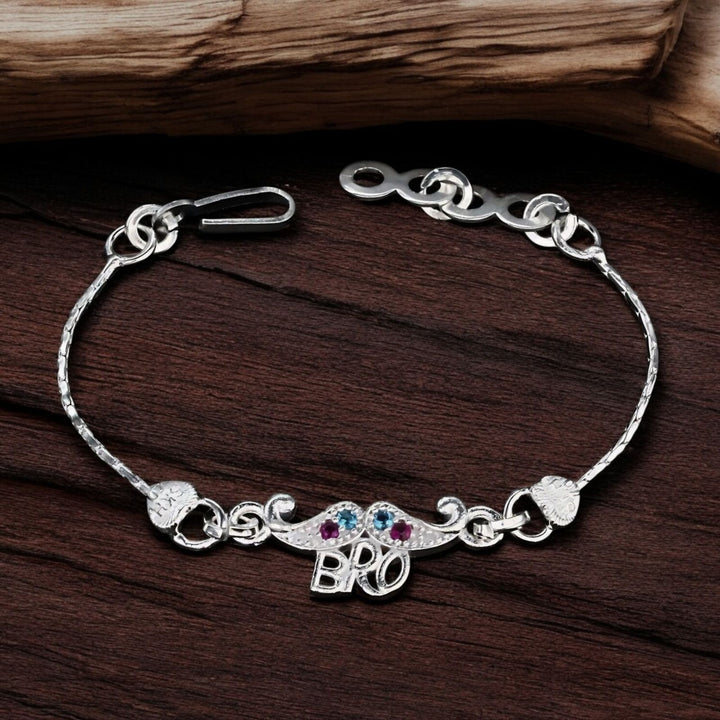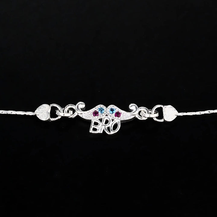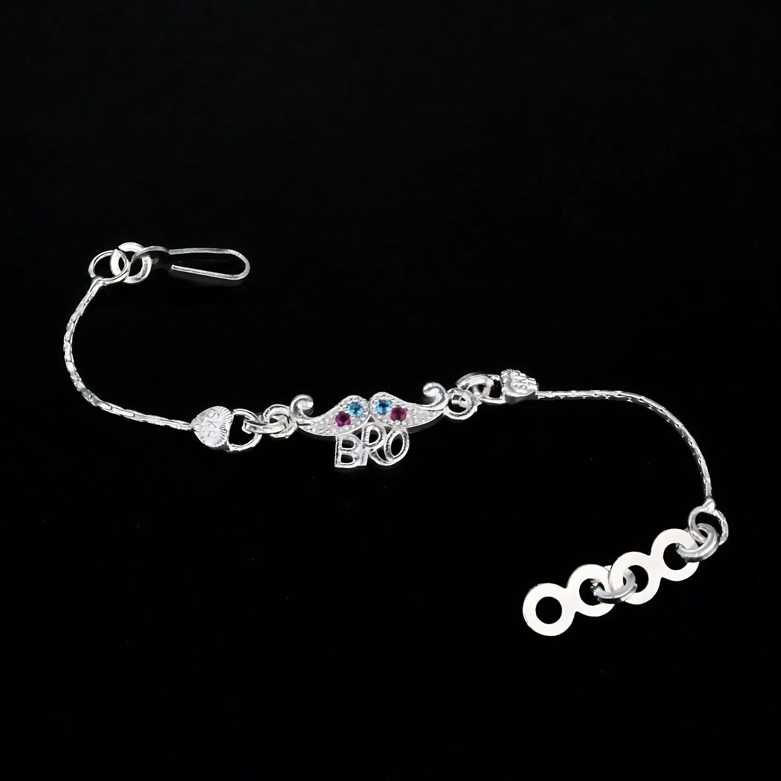 Unique Real Silver Bracelet CZ Kids Bro Moustache Rakhi 5"