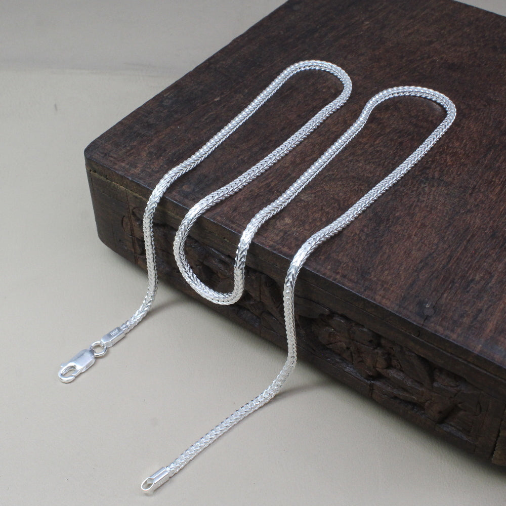 This 20-inch 925 solid silver chain features a classic Indian style design, combining elegance with durability. Crafted from real sterling silver, it offers a lasting shine and a comfortable fit for daily wear or special occasions. Its versatile length and timeless look make it a perfect accessory to complement any outfit while ensuring confidence in quality and style.