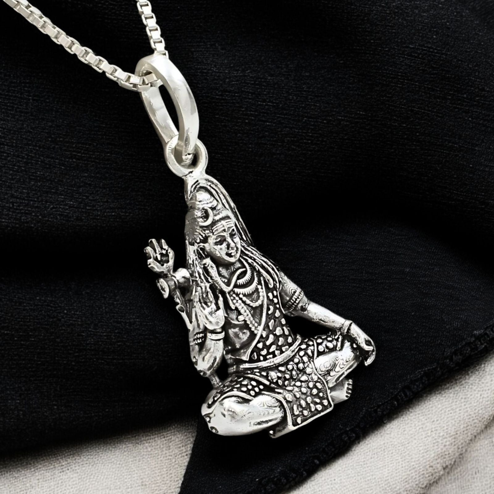 This 925 sterling silver pendant features an oxidized finish and a detailed depiction of Lord Shiv Mahadev, symbolizing strength and spirituality. Crafted with care, it offers a meaningful accessory that complements your style while serving as a reminder of divine protection and inner peace. Perfect for daily wear or special occasions, this pendant connects you to timeless tradition with a modern touch.