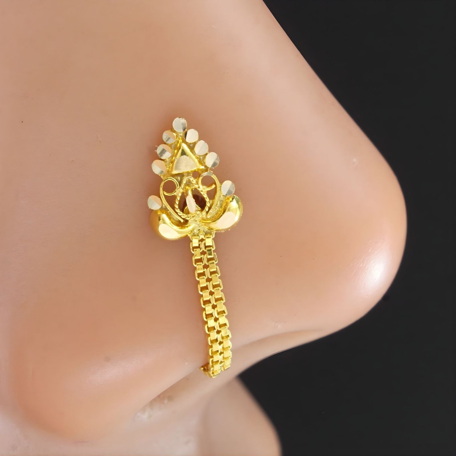 14k Real Gold Chain Style Nose Pin