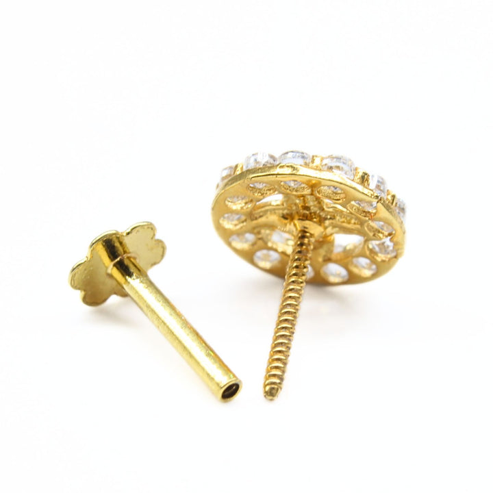 Elevate your look with our 18K Real Gold Clear White CZ Nose Stud. This elegant piece features sparkling cubic zirconia stones set in genuine 18K gold with a secure screw back design. Perfect for special occasions or everyday wear, this nose stud combines luxury, comfort, and timeless style for a touch of sophisticated glamour.