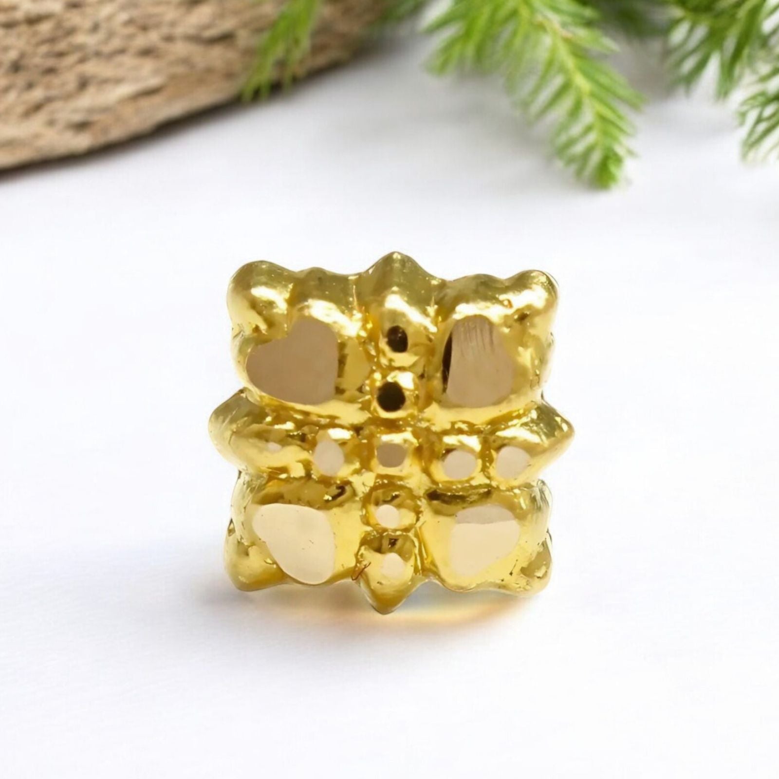 This 18K real gold floral square nose stud combines classic elegance with a unique geometric touch. Designed with a convenient push pin style, it offers comfortable and secure wear throughout the day. Crafted from genuine gold, this nose stud adds a subtle yet distinctive charm to your look, perfect for both everyday wear and special occasions.