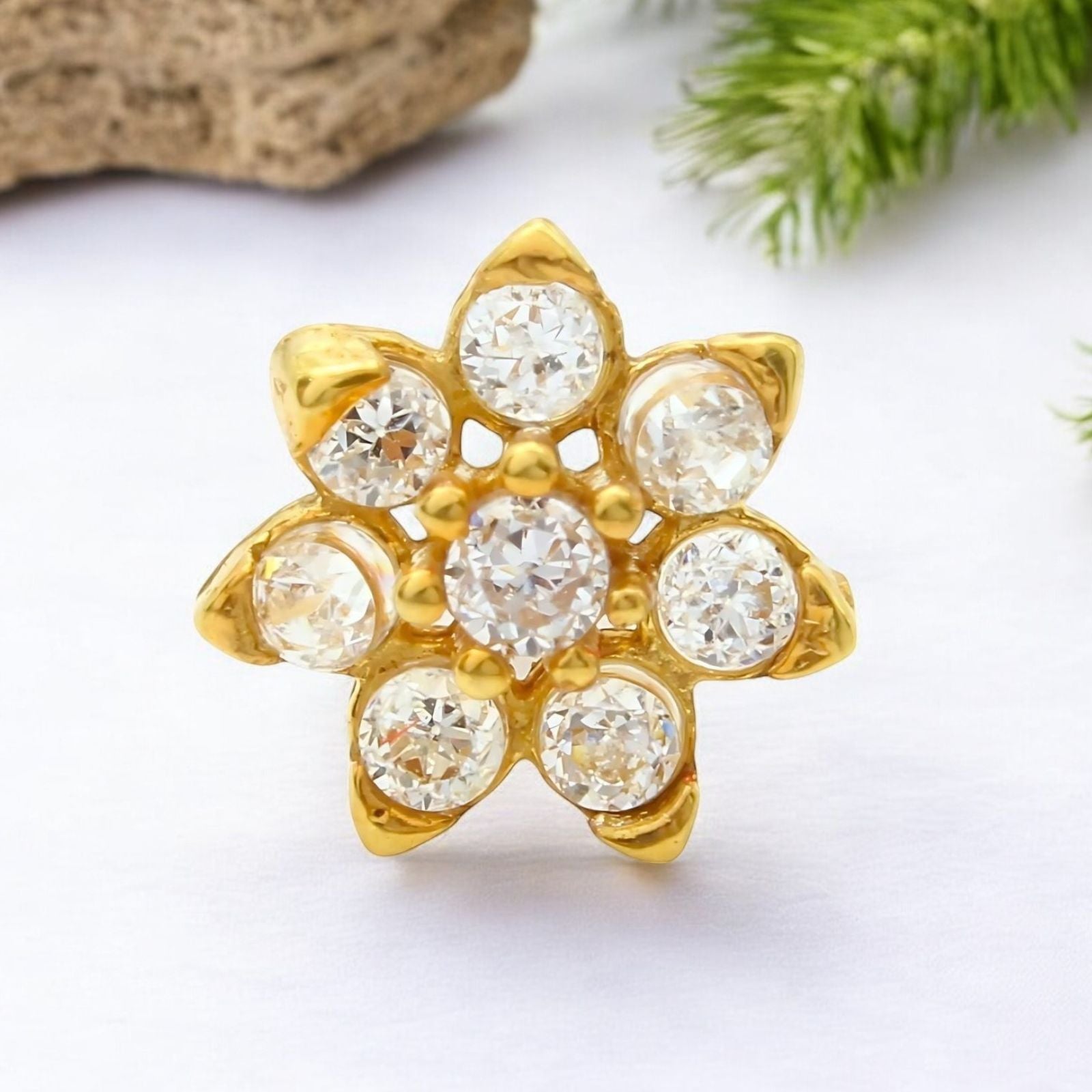 18K Real Gold Indian Women White CZ Flower Nose stud nose ring Push Pin