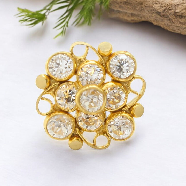 Elevate your style with this sophisticated 18K real gold square nose stud. Featuring brilliant white CZ stones in a modern square setting, this push pin nose ring combines traditional Indian craftsmanship with contemporary design. The secure fitting ensures comfortable all-day wear, while the lustrous gold and sparkling stones add a refined touch of elegance to your facial features.