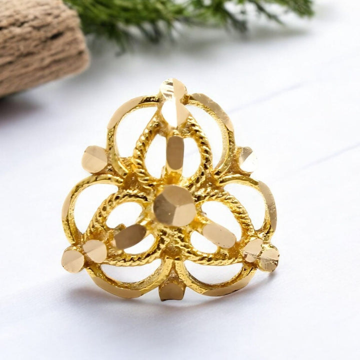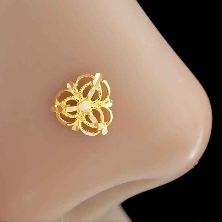 This Indian 18K real gold nose stud features a cultural design that beautifully reflects traditional artistry. Its push pin style ensures easy, comfortable wear and a secure fit. Crafted from genuine gold, this nose stud adds a meaningful and elegant touch to your everyday look or special occasions, celebrating heritage with lasting quality.
