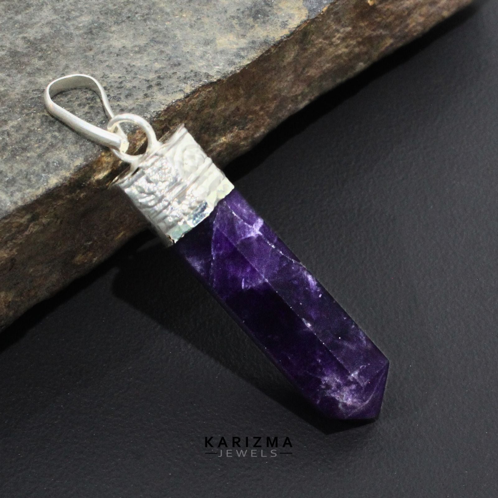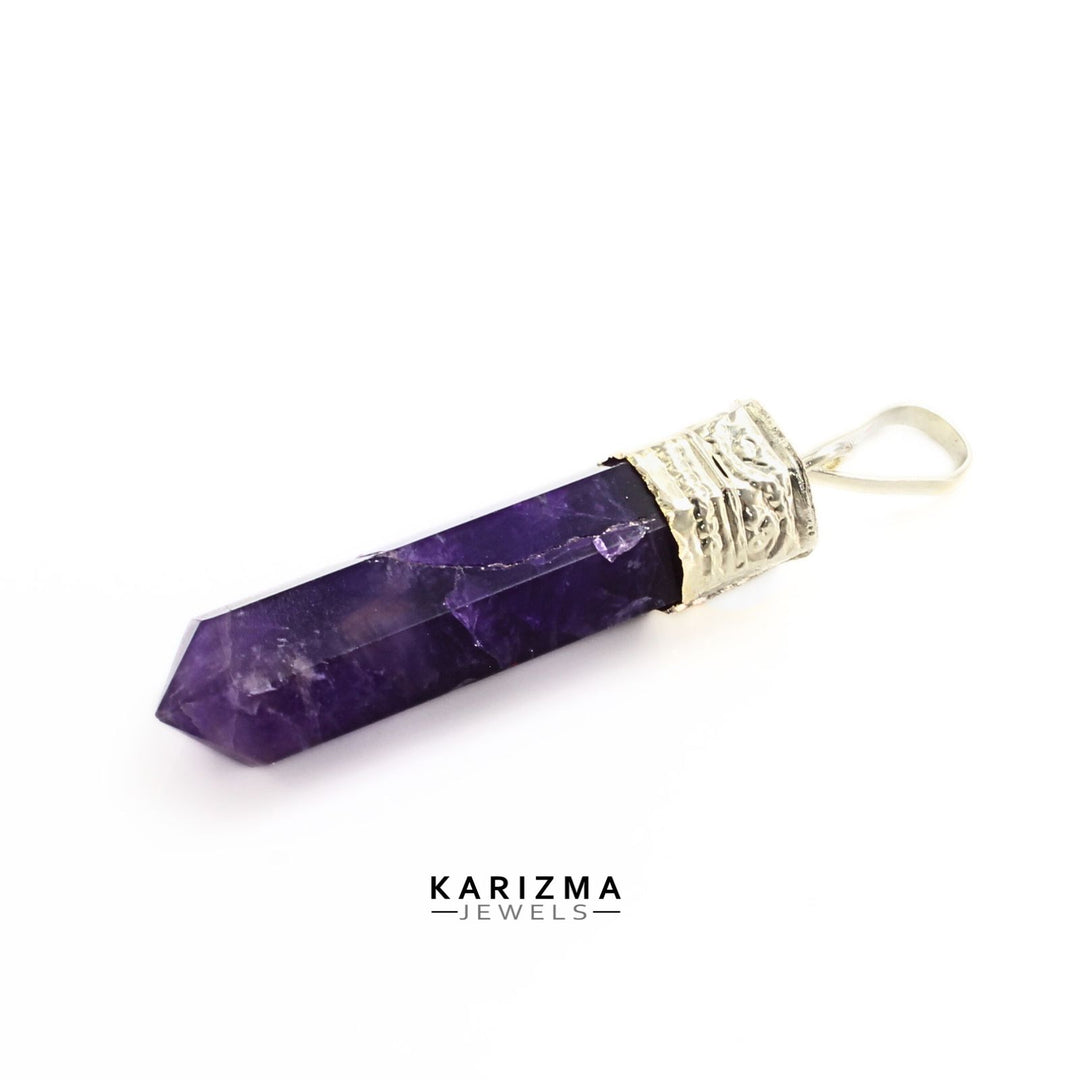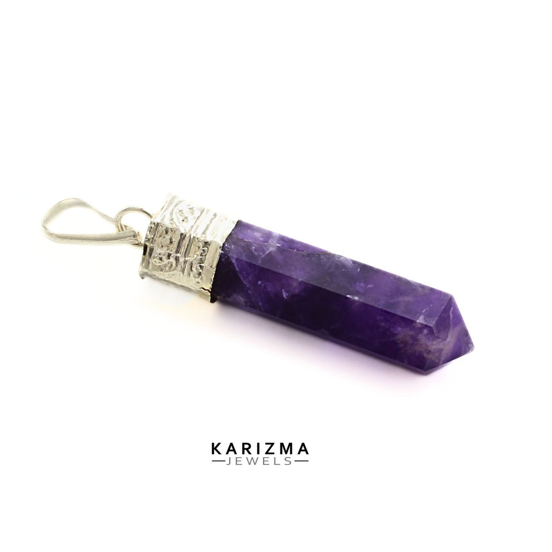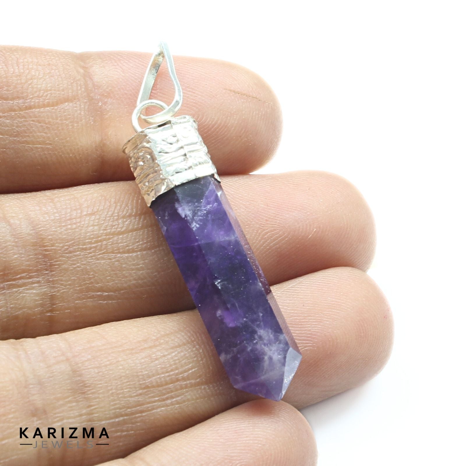 18Ct Natural Purple Amethyst Gemstone Healing Point Pencil Pendant