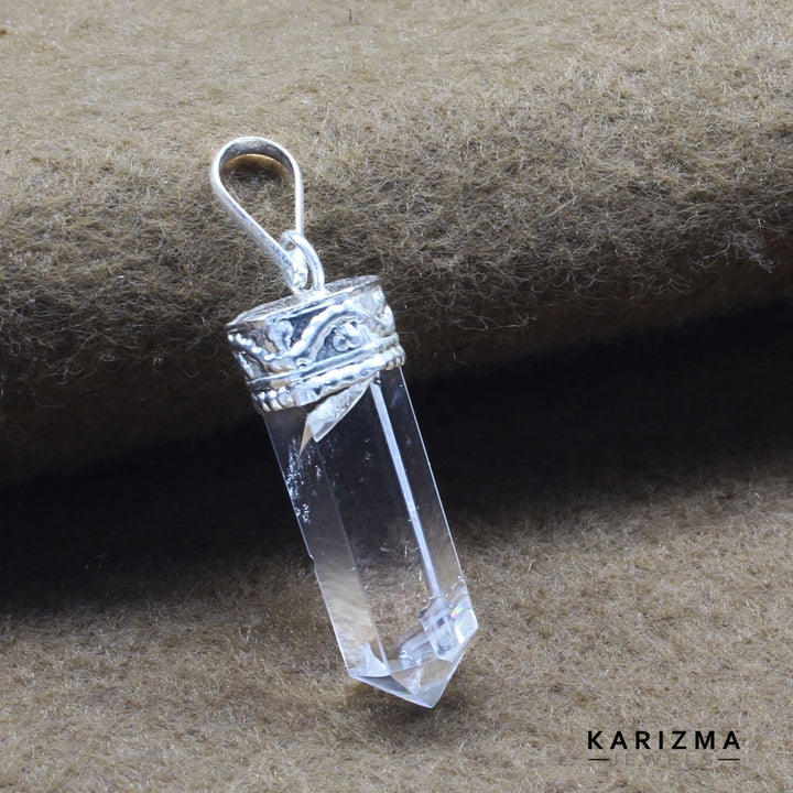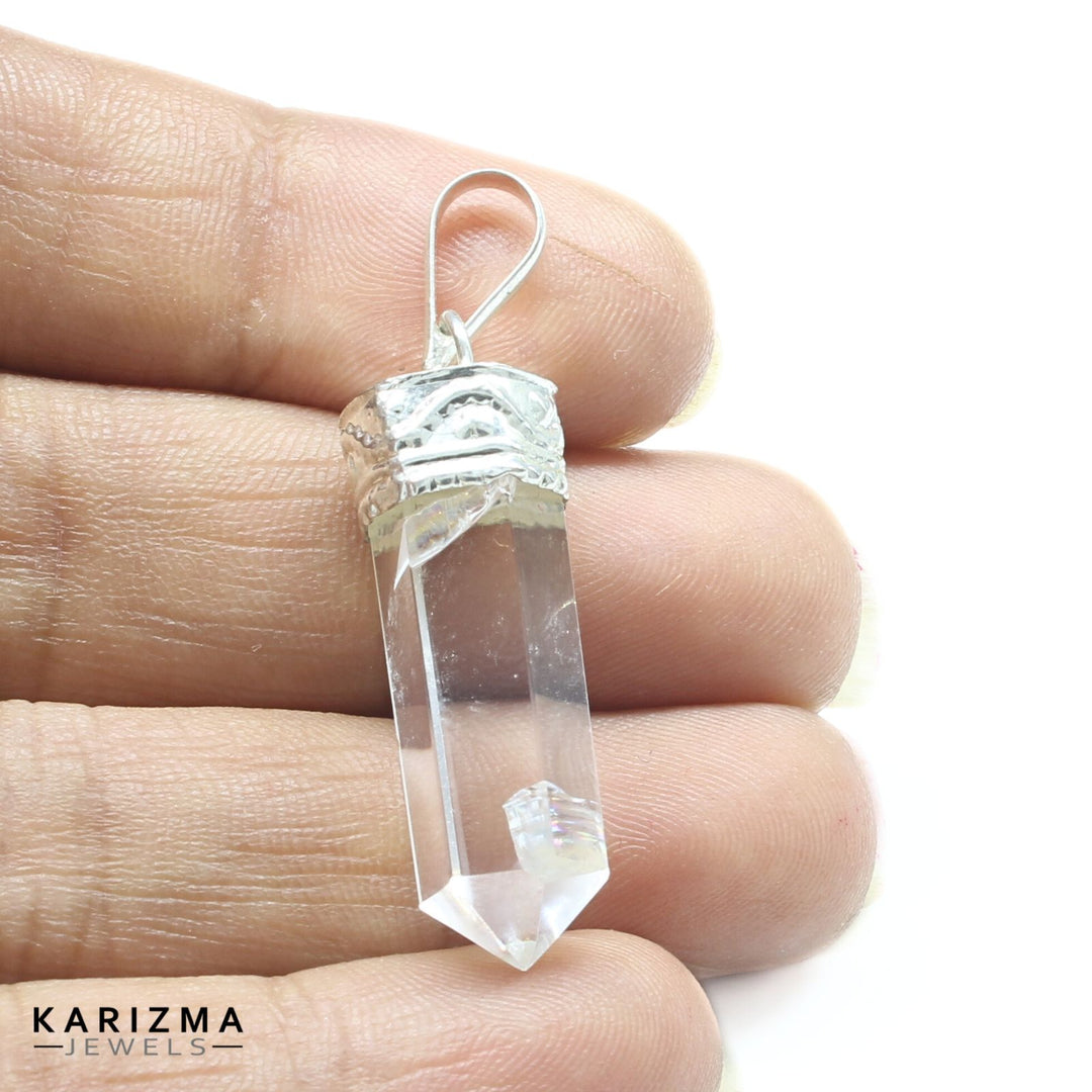 This 21.9Ct Natural Quartz Crystal Healing Point Pencil Pendant is a beautiful and versatile accessory that can bring positive energy and balance to your day. The pointed design of this pendant allows for focused intention and clarity, making it perfect for meditation and healing practices. Elevate your style and well-being with this stunning quartz crystal pendant.
