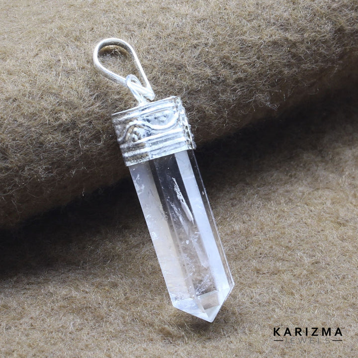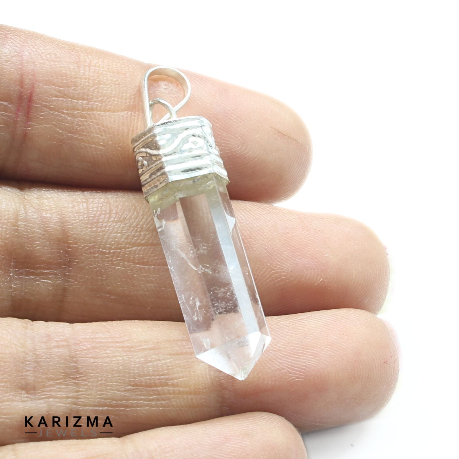 Empower yourself with our natural quartz crystal point pencil pendant. Its healing properties can bring balance and clarity to your daily life. Made from high quality quartz, this pendant is perfect for those seeking a more centered and aligned existence.