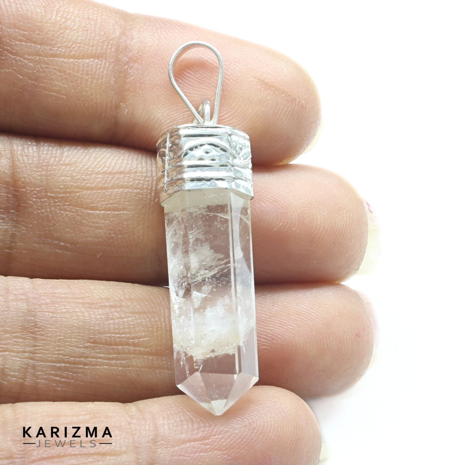 22.8Ct Natural Quartz Crystal Healing Point Pencil Pendant