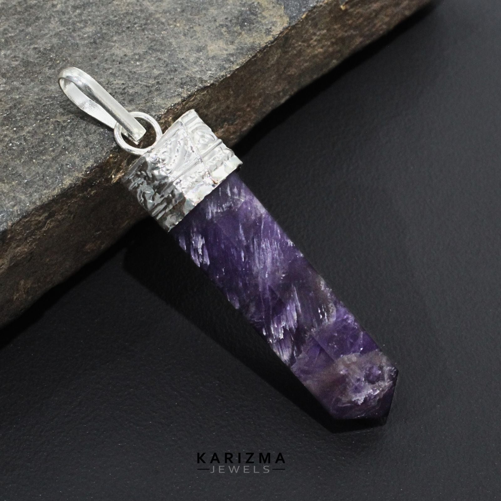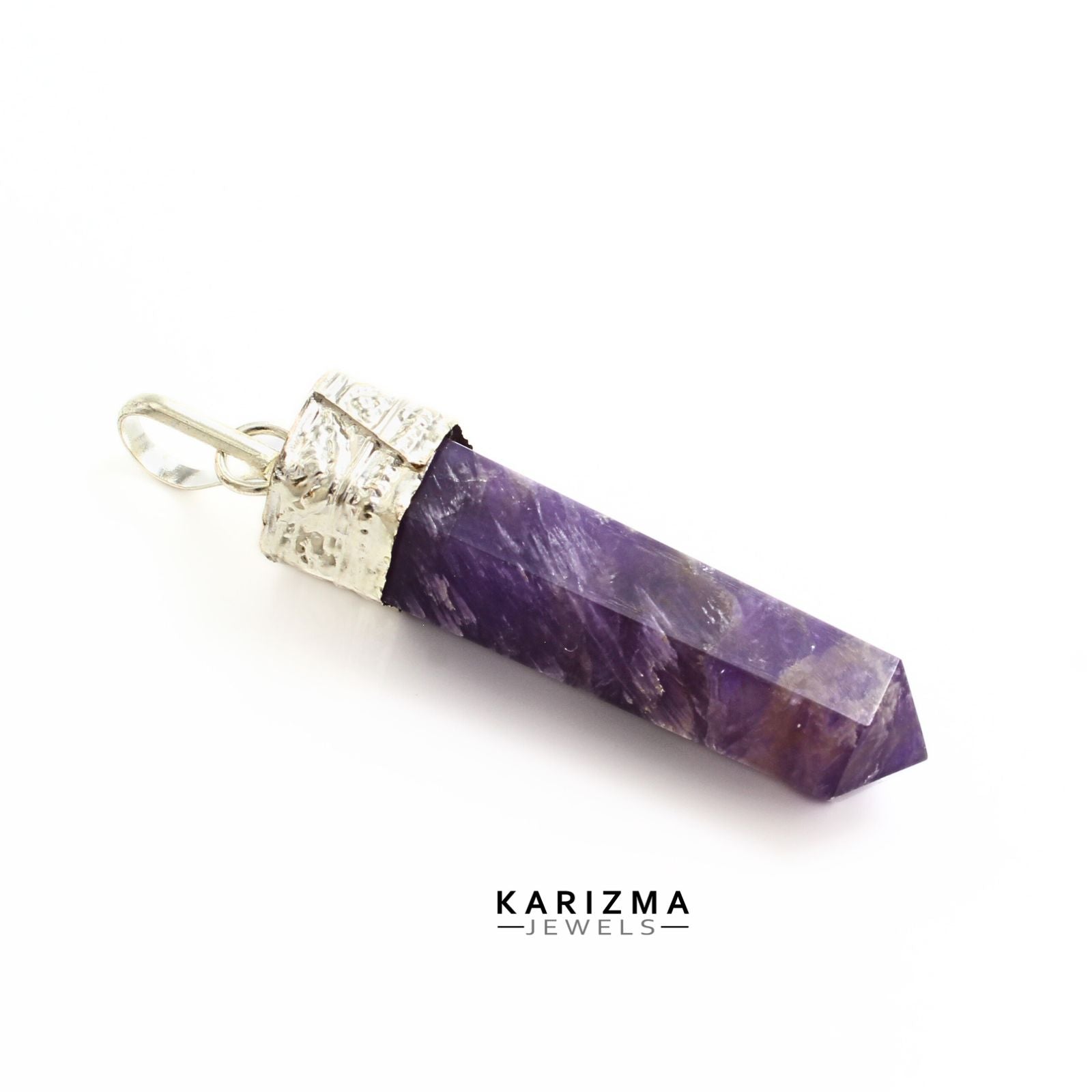 This 26.9Ct Natural Purple Amethyst Gemstone Healing Point Pencil Pendant is the perfect accessory for enhancing your energy and promoting inner peace. The pointed design amplifies the healing properties of the amethyst, helping you feel more balanced and relaxed. Stylish and beneficial, this pendant is a must-have for any crystal lover.