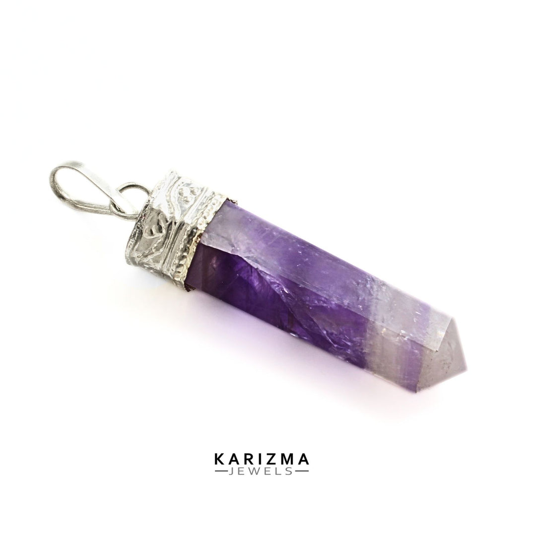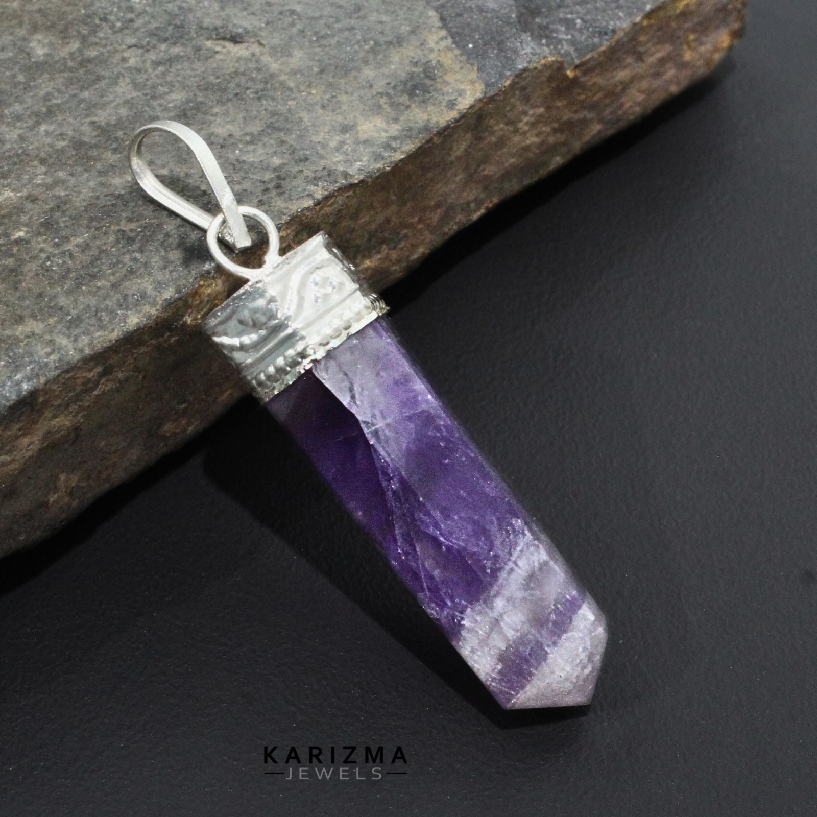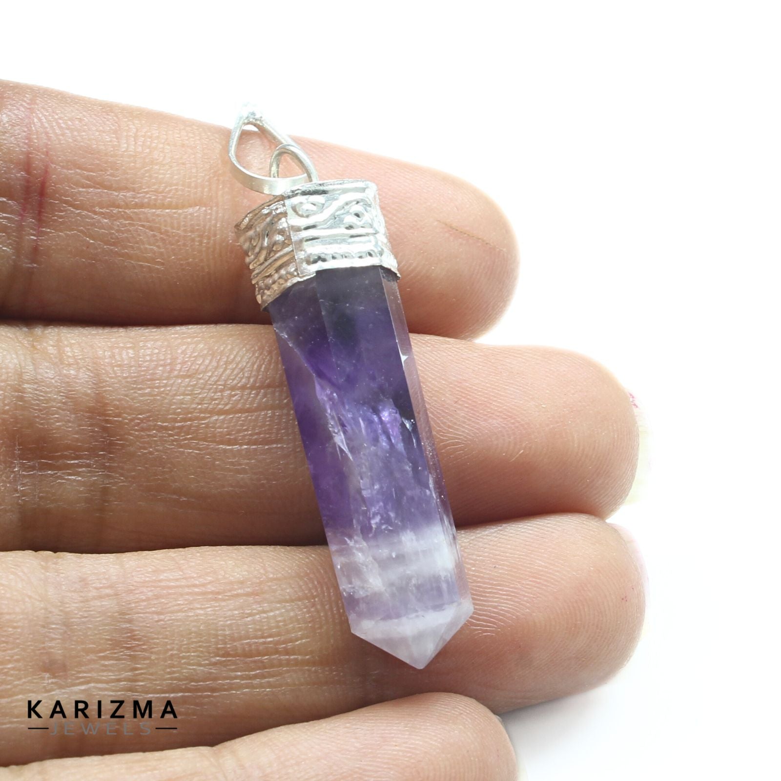 This stunning pendant features a natural purple amethyst gemstone healing point pencil. The unique point design allows for a more focused and concentrated flow of positive energy, promoting inner peace and balance. Perfect for those seeking emotional and spiritual healing.