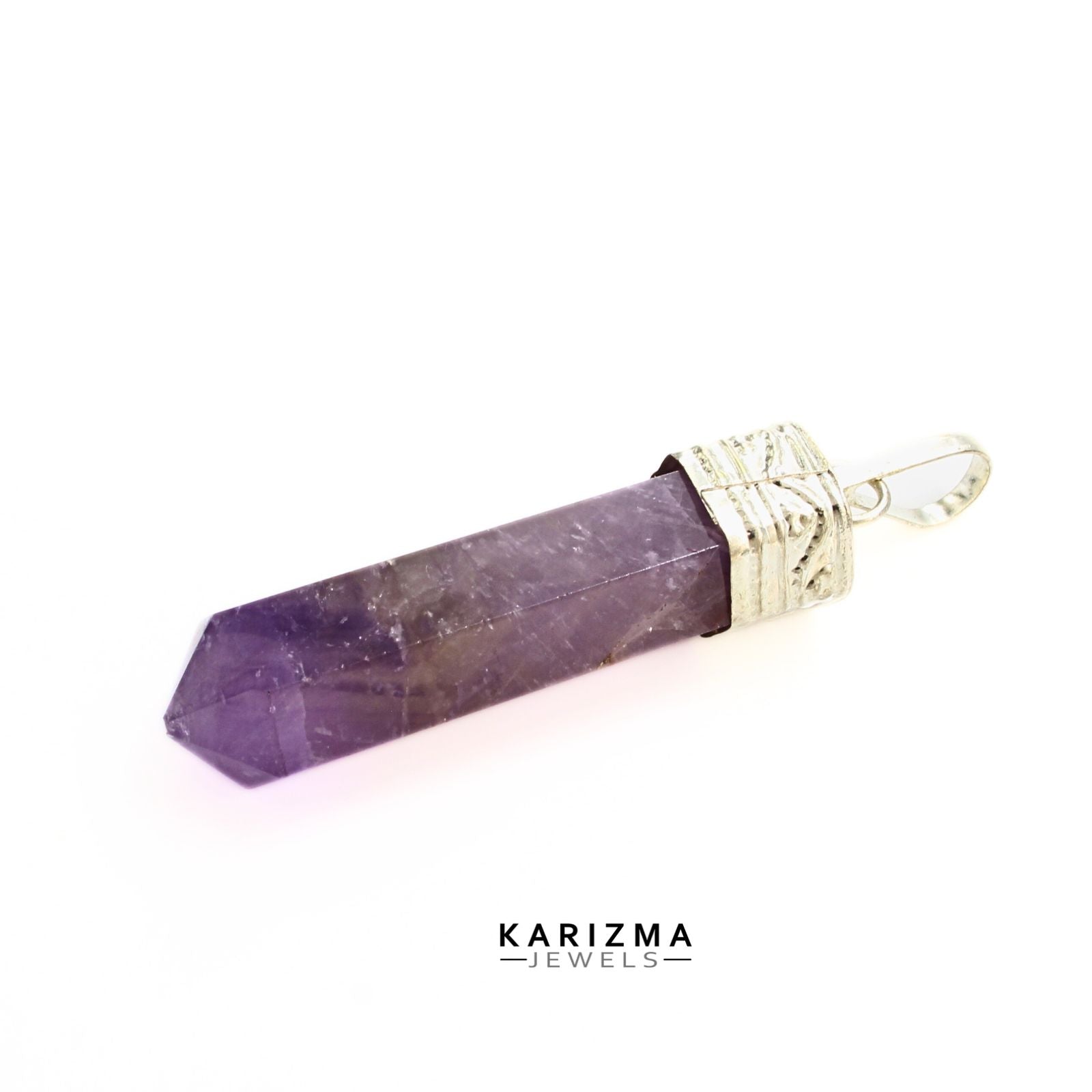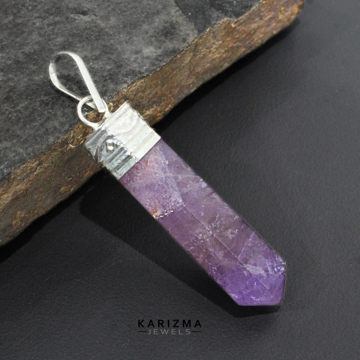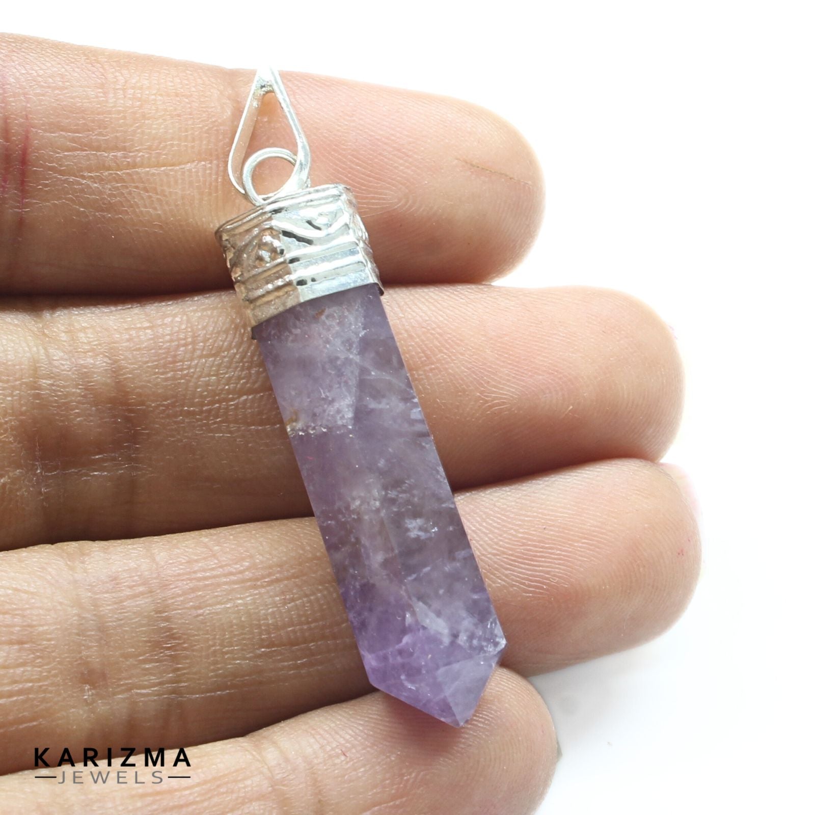 29.1Ct Natural Purple Amethyst Gemstone Healing Point Pencil Pendant