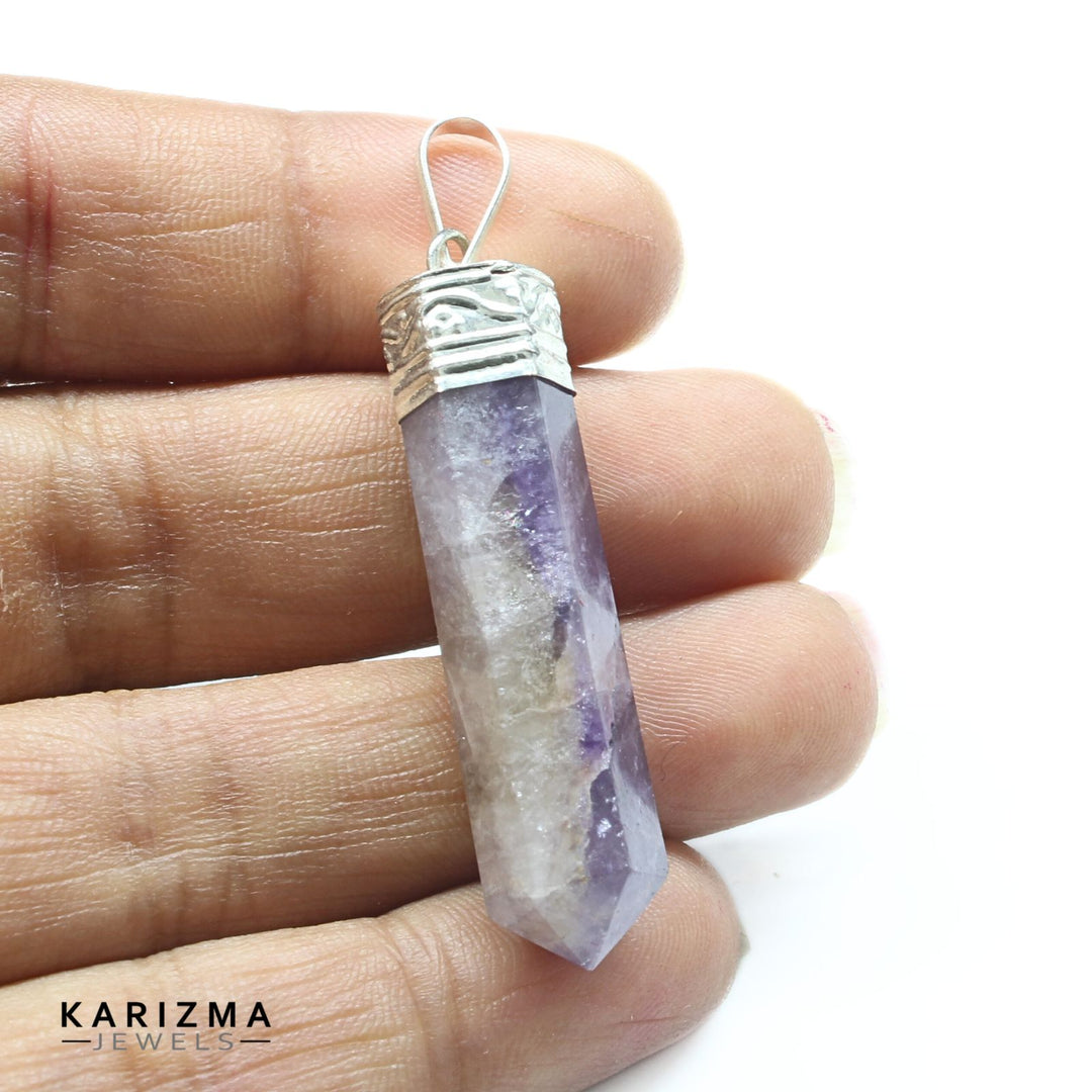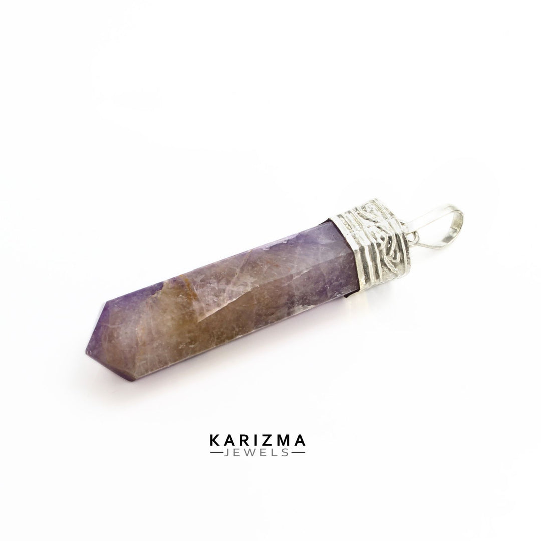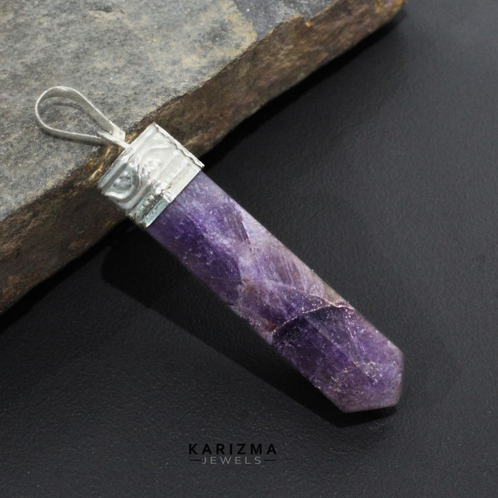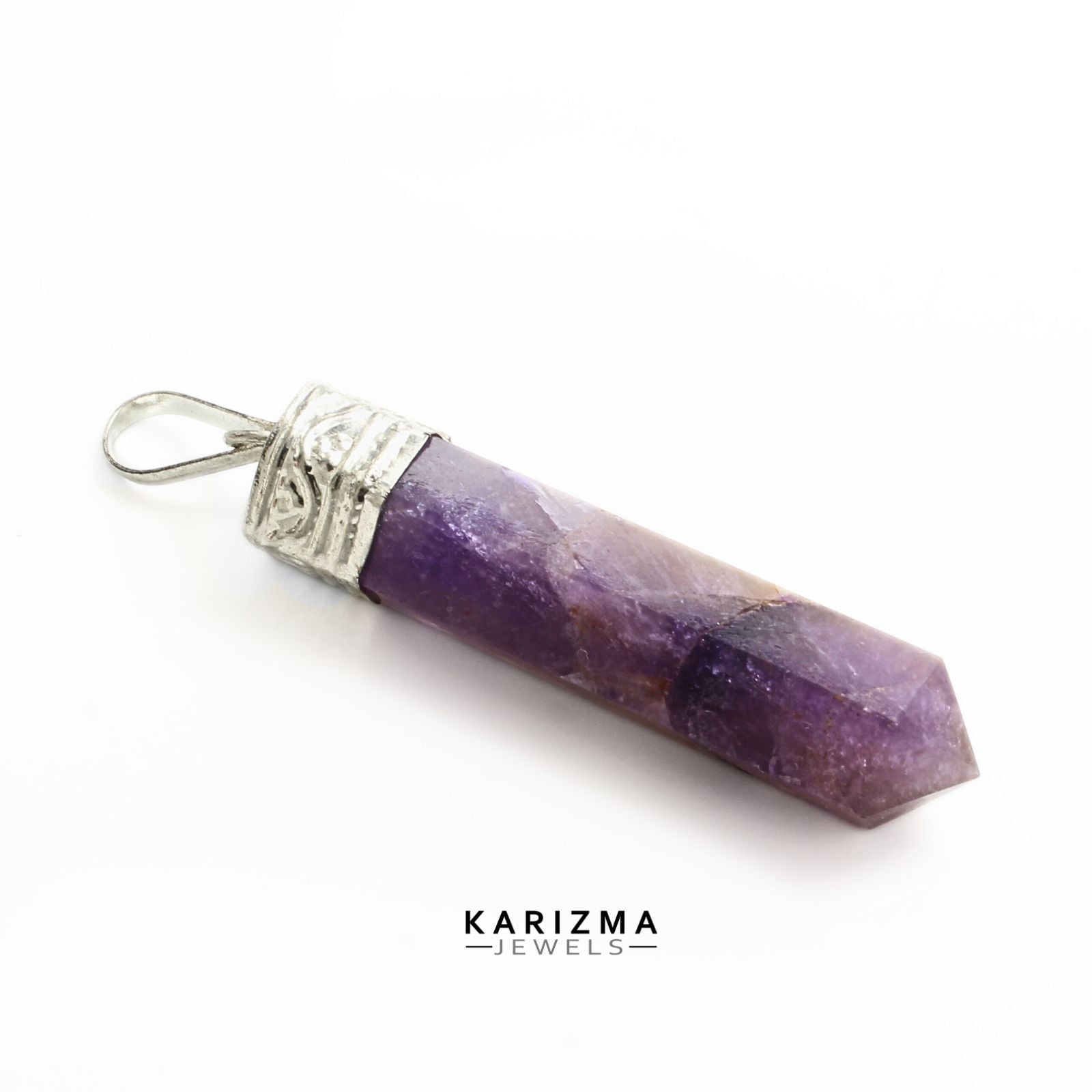 This natural purple amethyst gemstone pencil pendant features a healing point design. Improve your overall well-being with this beautiful and unique accessory.