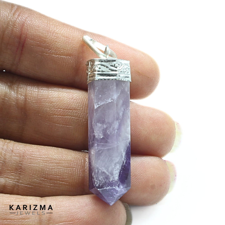 Enhance your style and well-being with our 35.6Ct Natural Purple Amethyst Gemstone Point Pencil Pendant. The pointed design of the pendant allows for a deeper connection with your inner self, promoting healing and balance. Elevate your energy and fashion with this beautiful and meaningful piece.