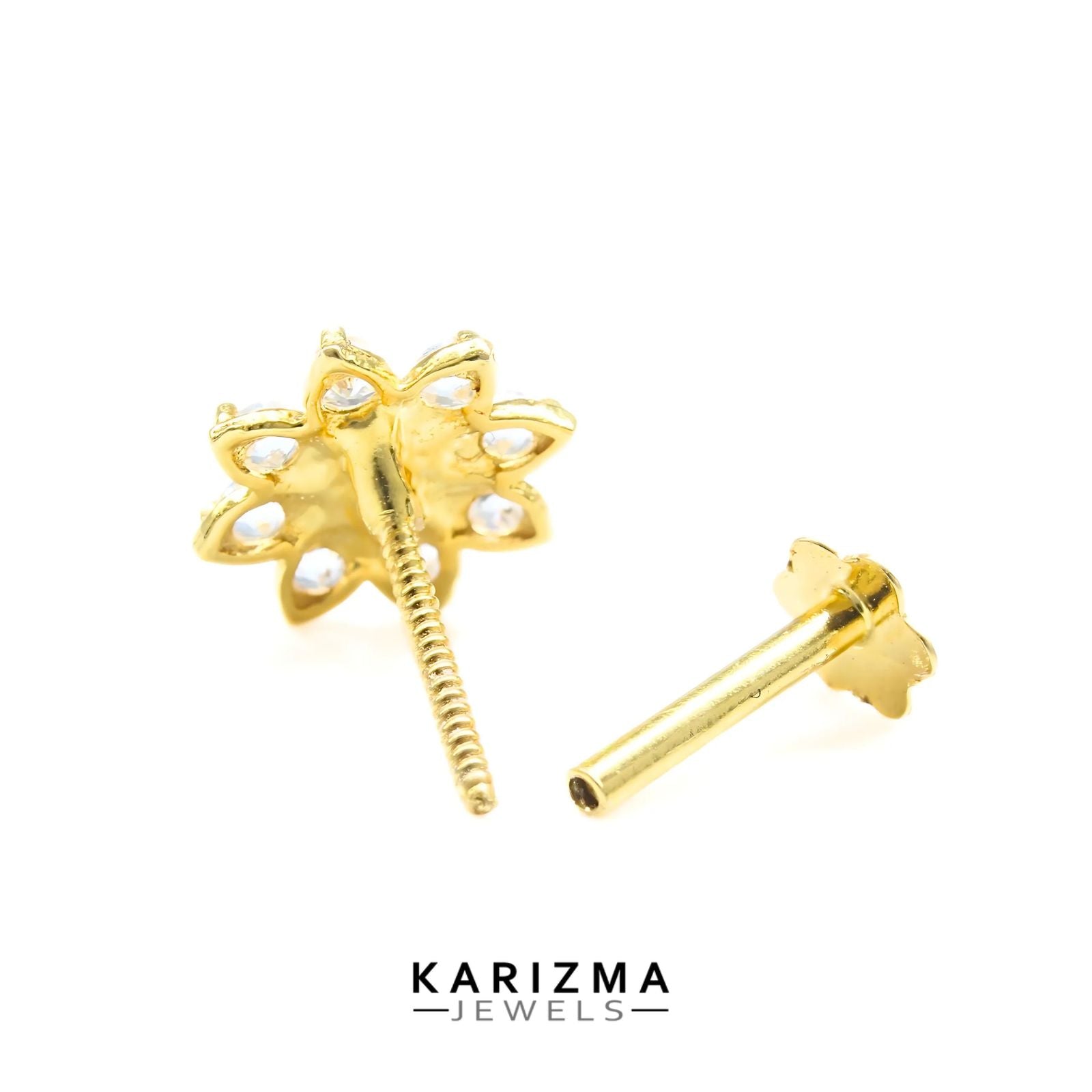 Add a pop of glamour and elegance to your everyday look with our 18K Real Gold star design Nose stud cum Earring. Crafted with sparkling White CZ and featuring a convenient Screw Back, this versatile piece can be worn as a nose stud or an earring. Elevate your style effortlessly with this stunning piece.