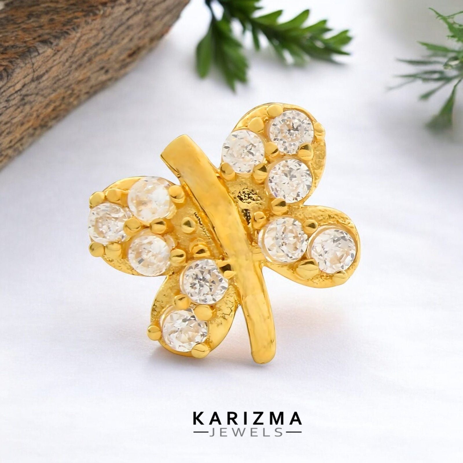 Add a touch of elegance to your look with our Cute Butterfly 18K Real Gold Indian Women White CZ Nose stud. Made with high-quality materials, this nose ring features a delicate butterfly design and sparkling white CZ stones. The perfect accessory for any occasion, effortlessly elevate your style with this stunning nose stud.