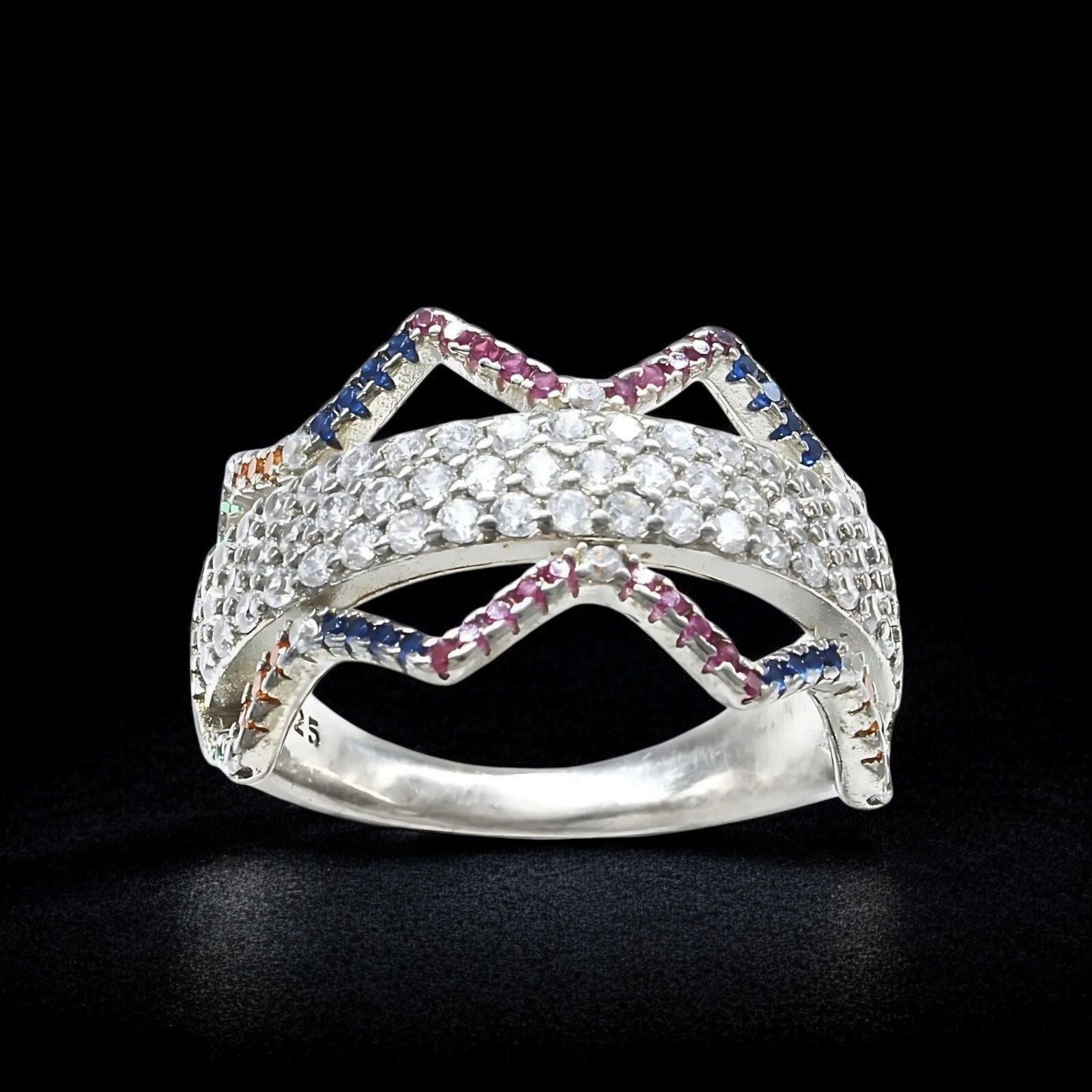 This Real 925 Sterling Silver ring features a trendy design adorned with multiple sparkling cubic zirconia stones. Crafted for durability and style, it adds a touch of elegance to any outfit while being comfortable for everyday wear. Perfect for women who appreciate both quality and fashion in their jewelry collection.