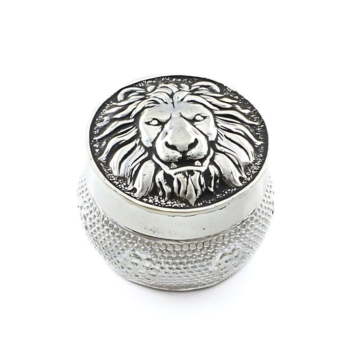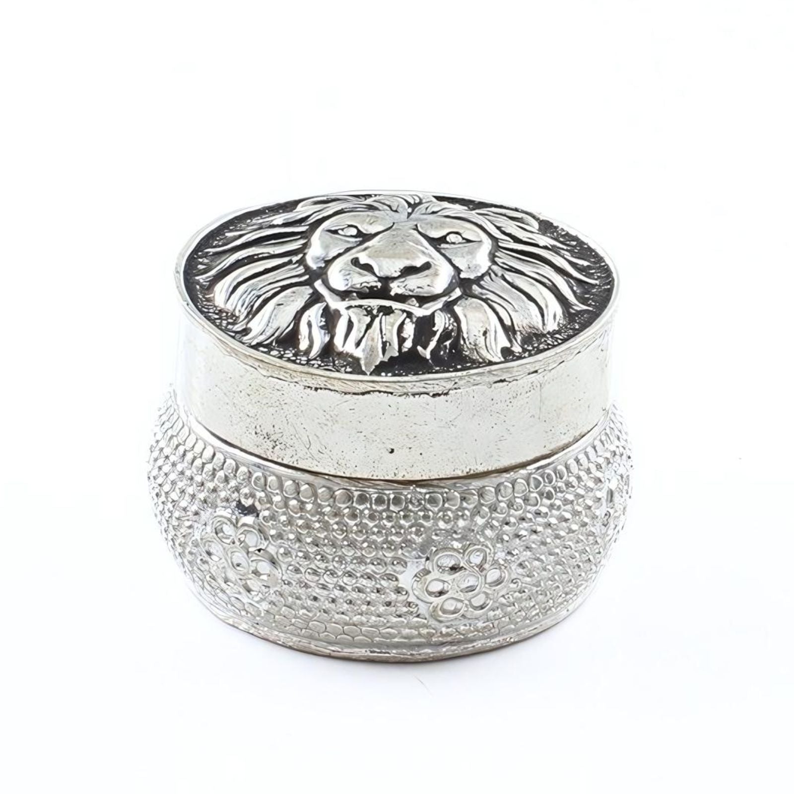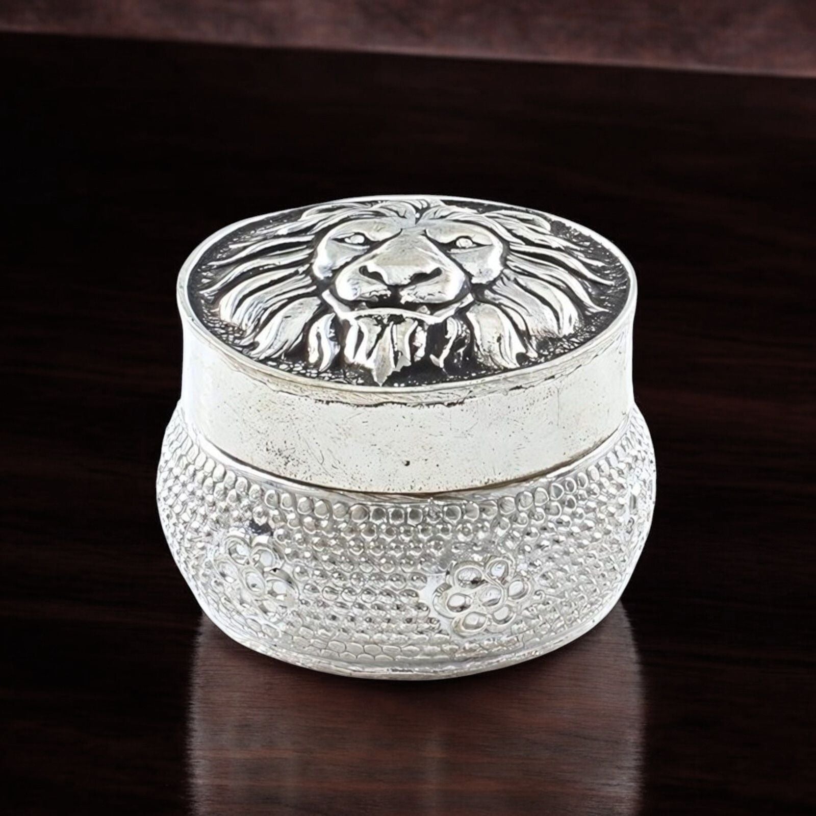Real Silver Honey Container Oxidized Lion face Dibbi for Red Book Remedy
