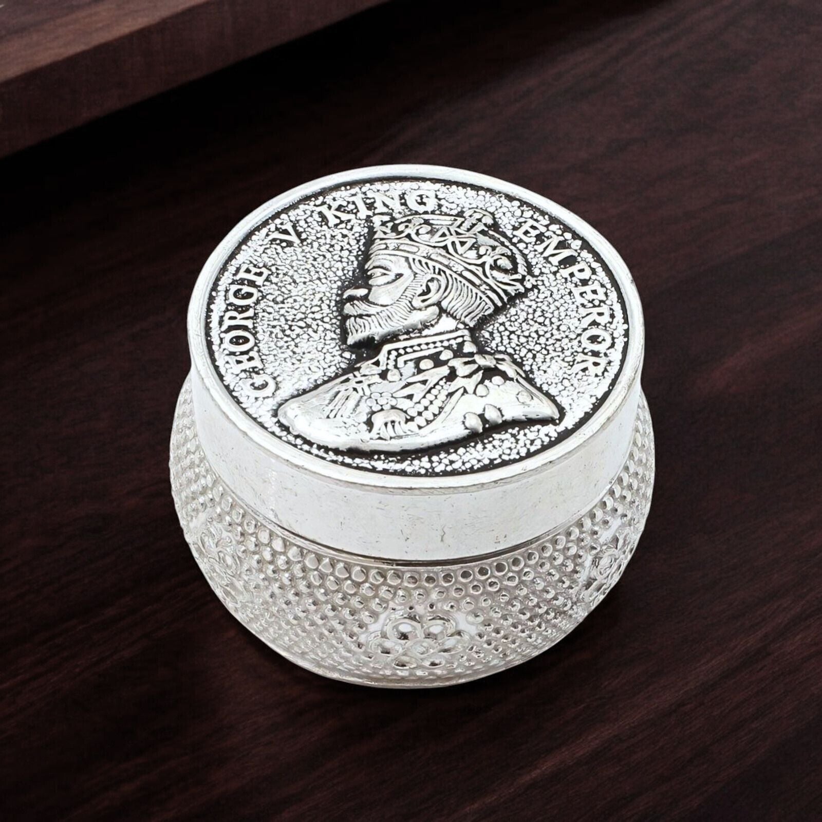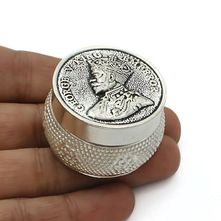 This Real Silver Honey Container features an oxidized V King Emperor design, blending traditional craftsmanship with practical use. Perfect for storing honey or other remedies, it adds a touch of elegance and cultural significance to your daily rituals. Durable and beautifully crafted, this container supports your wellness routine with style and authenticity.