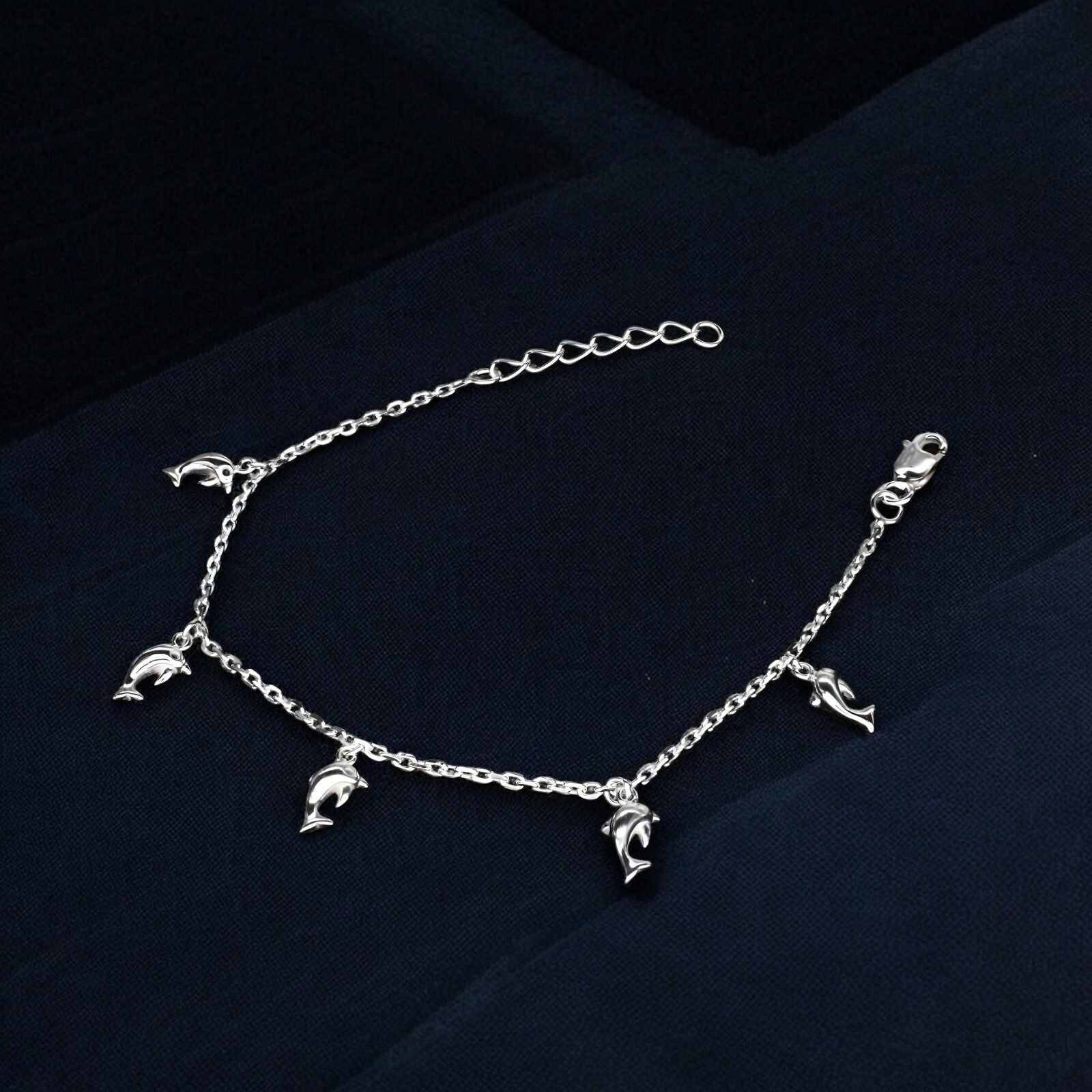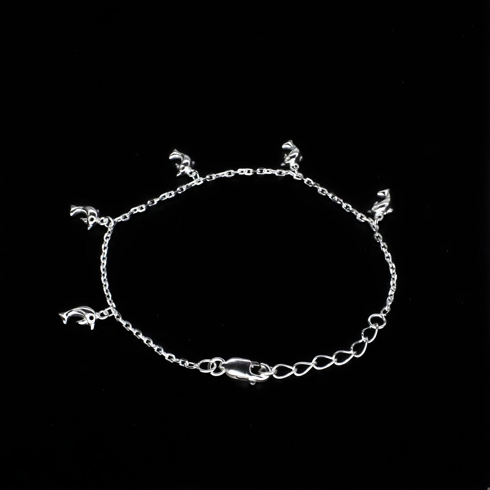 Dive into whimsy with this enchanting sterling silver bracelet, adorned with elegant dolphin charms that celebrate the beauty of ocean life. Crafted from authentic 925 sterling silver, this adjustable cable chain bracelet grows with you, offering a perfect fit for any wrist size. The graceful dolphin motifs symbolize intelligence, playfulness, and freedom, making this piece meaningful as well as delightful. The smooth cable chain design ensures comfort during wear, while the adjustable feature adds practicality to its charm. A wonderful gift for ocean lovers and dreamers who appreciate jewelry that tells a story.