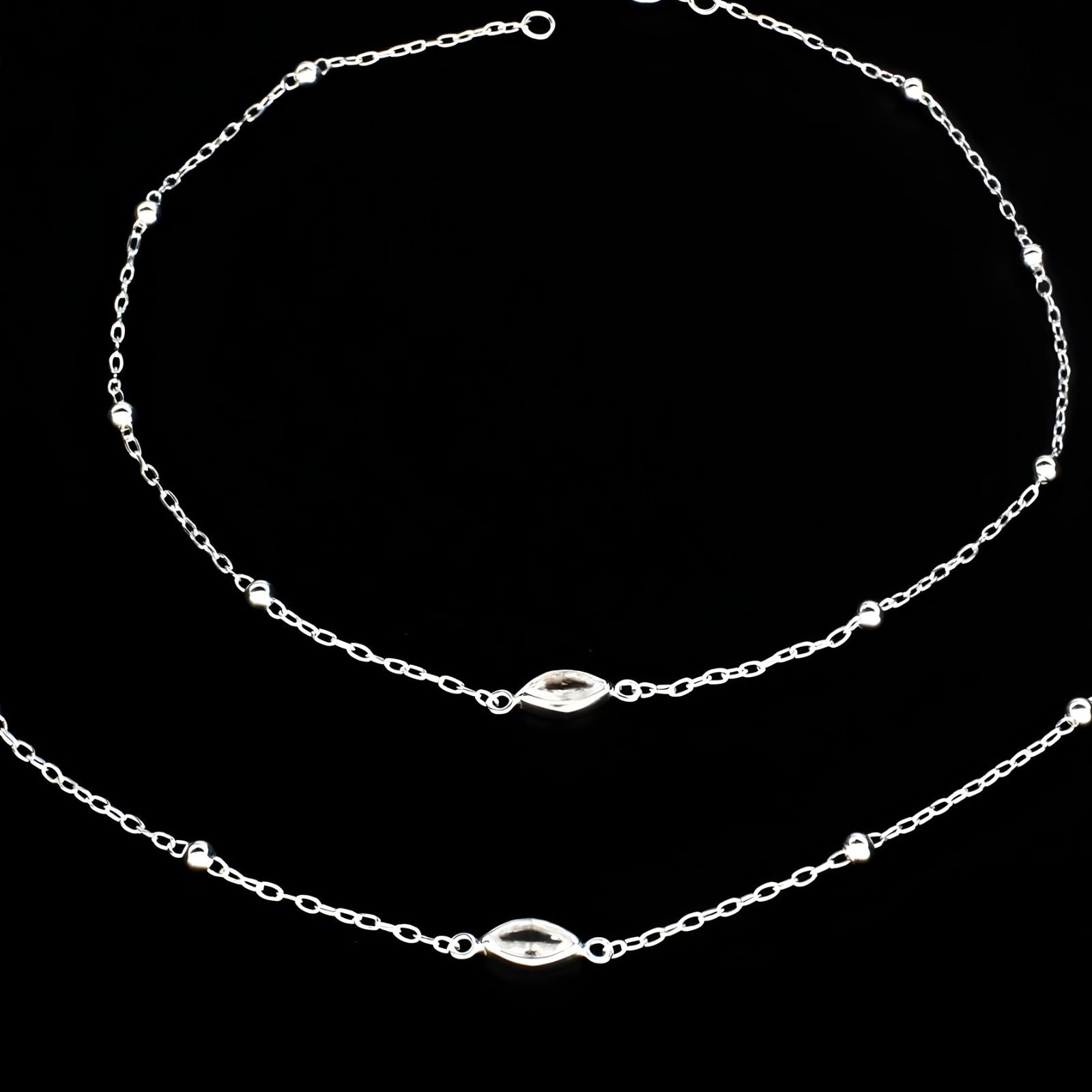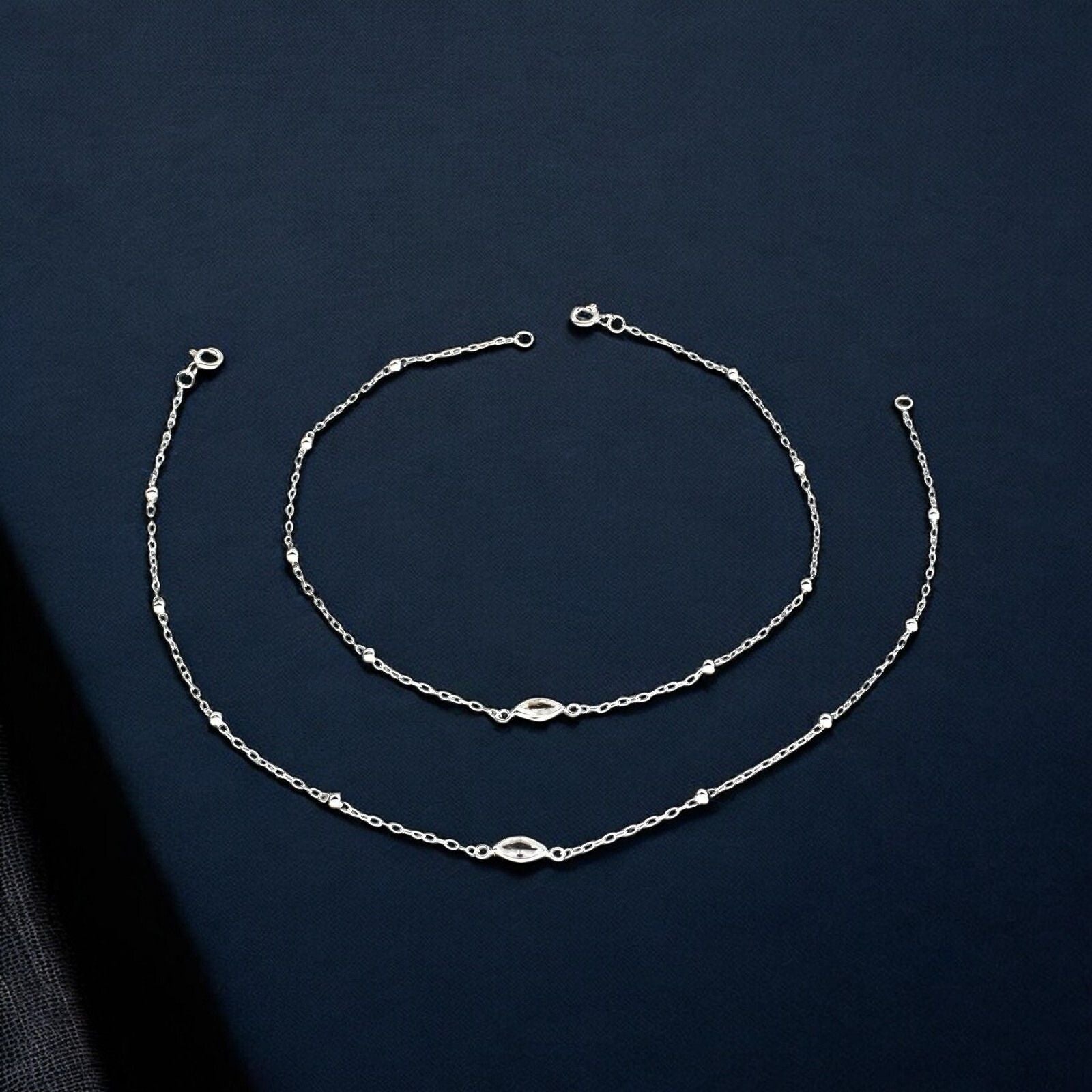 Adorn your ankles with this delicate pair of 925 sterling silver anklets, crafted with a charming beaded design and sparkling white cubic zirconia accents. Each piece measures 10.2 inches, offering a perfect fit for most wearers. The lightweight construction makes them comfortable for all-day wear, while the lustrous silver finish adds an elegant touch to any outfit. Whether you're dressing up for a special occasion or adding everyday sparkle, these versatile anklets complement both casual and formal styles beautifully.