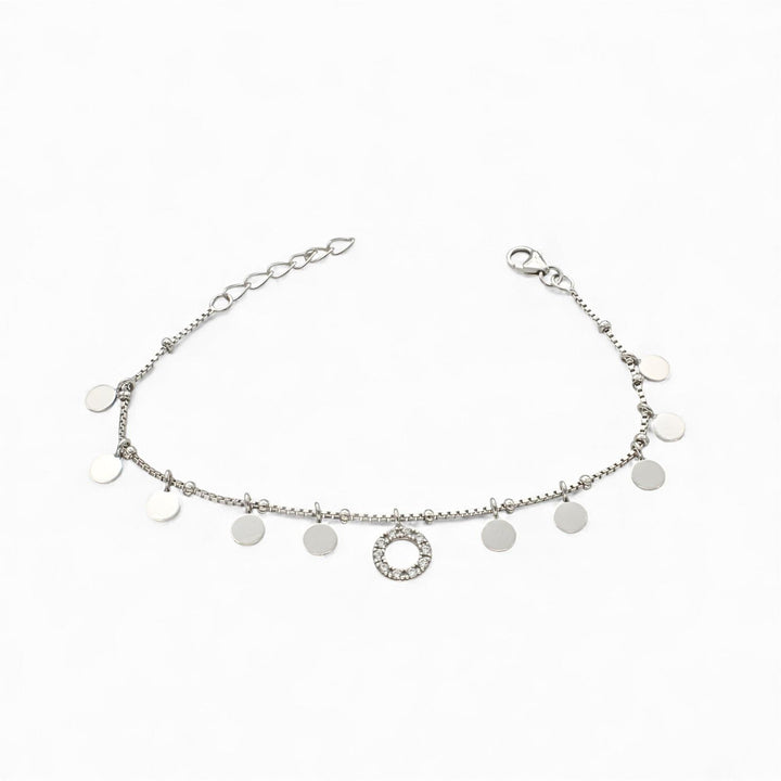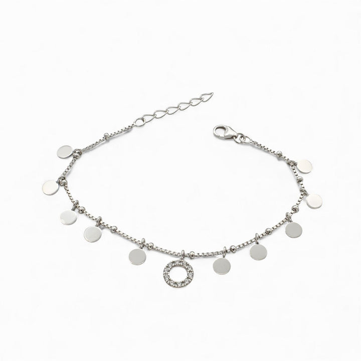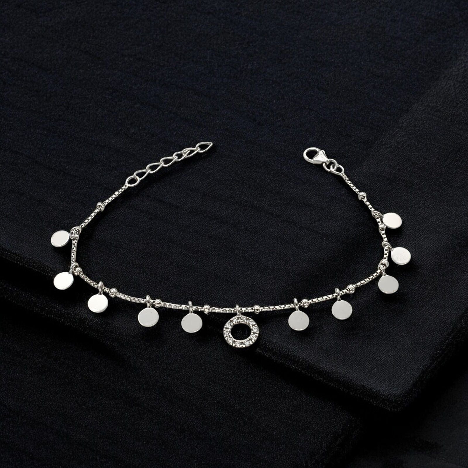 Elevate your everyday style with this stunning 925 sterling silver bracelet, thoughtfully designed for the special girl in your life. Featuring delicate white cubic zirconia coin charms that catch the light beautifully, this piece combines timeless elegance with modern charm. The secure chain design ensures durability while maintaining a graceful, feminine aesthetic. Perfect as a meaningful gift or a personal treasure, this bracelet celebrates individuality and adds a touch of sparkle to any occasion. A versatile accessory that transitions seamlessly from casual to formal wear.