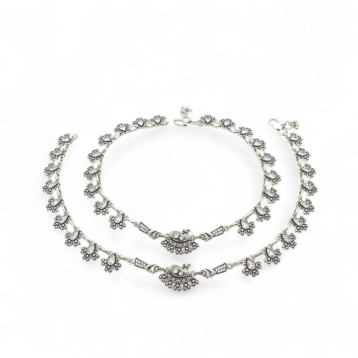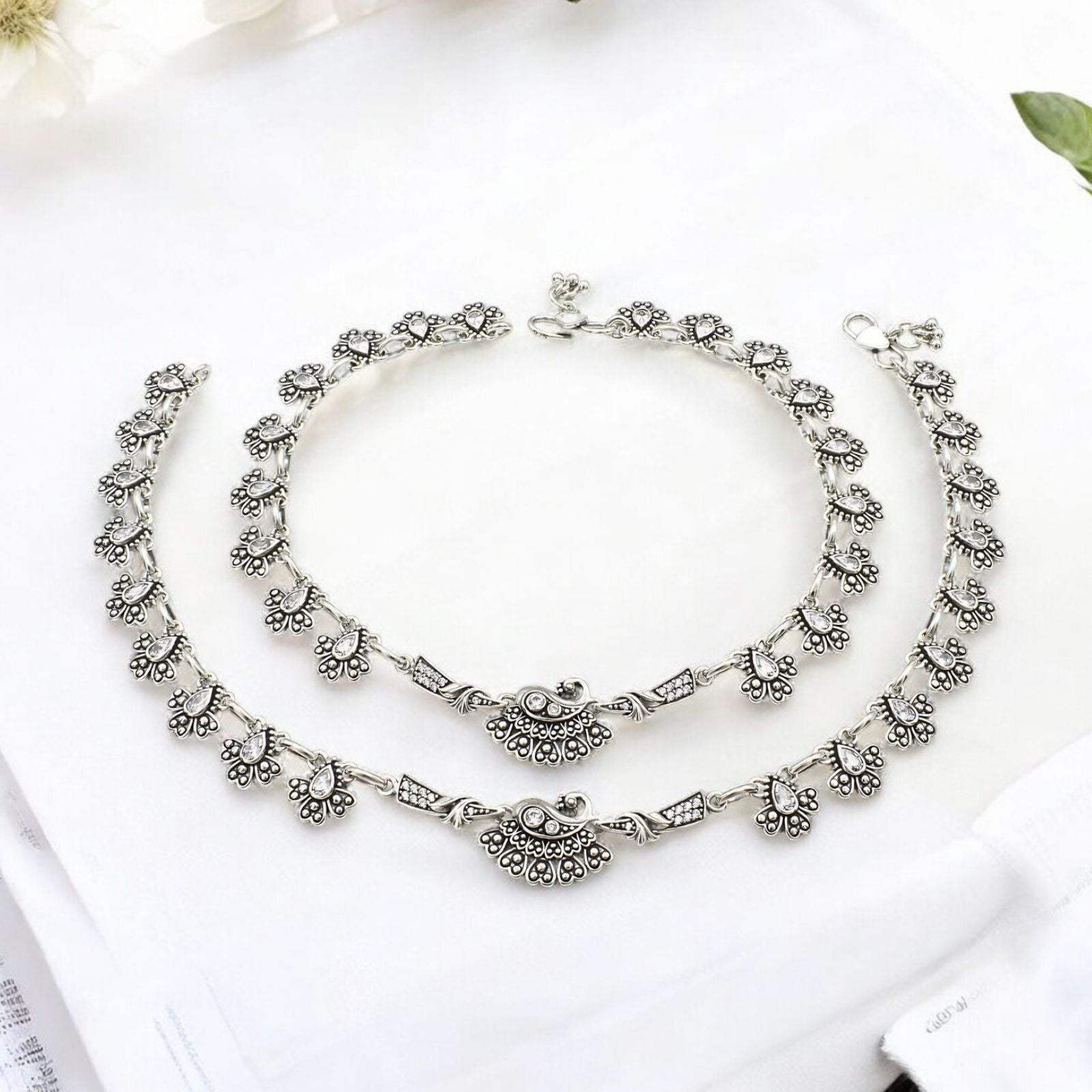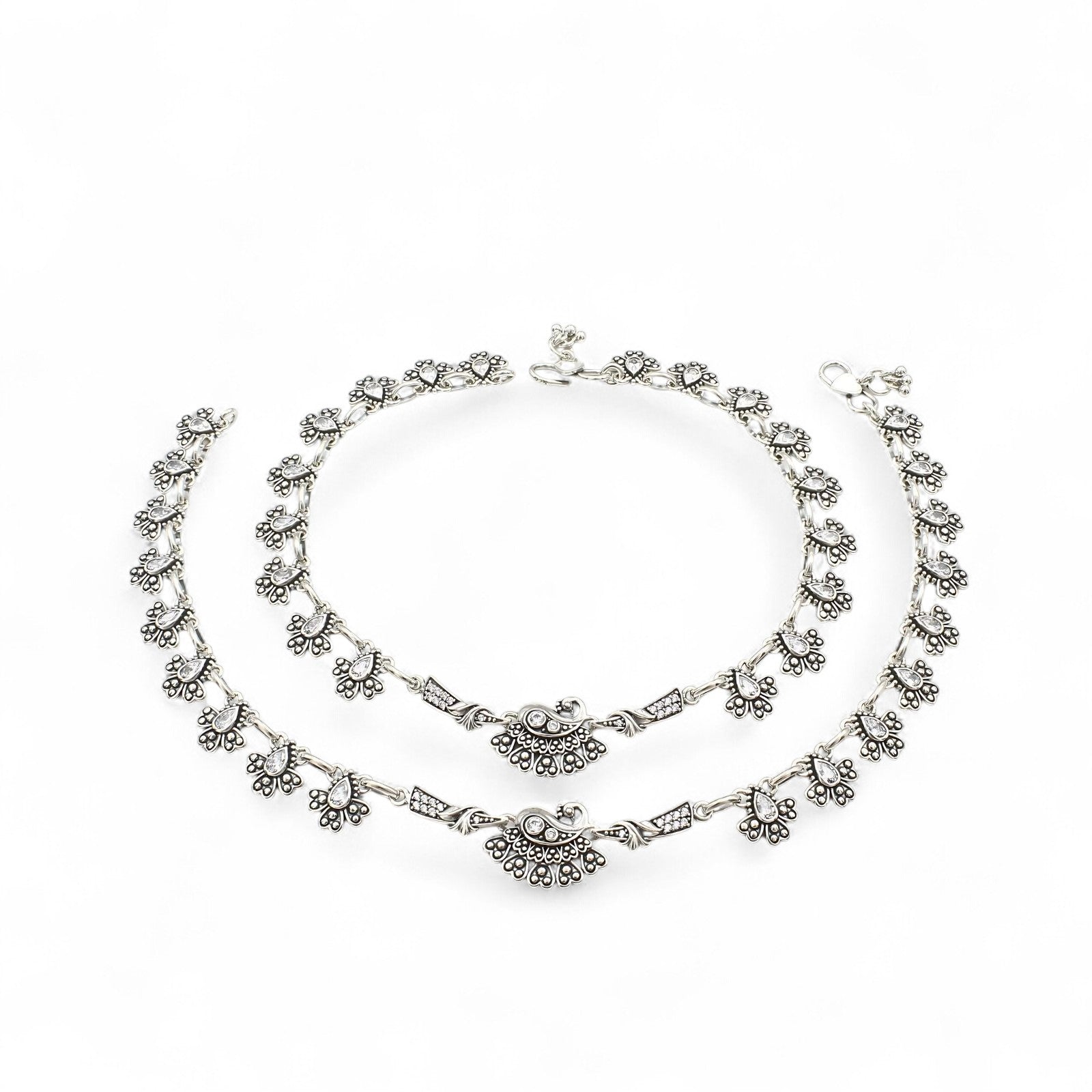 Elevate your style with this pair of 925 Sterling Silver anklets designed for women. Featuring delicate pink cubic zirconia stones set on an oxidised finish, these 10.3" dangle anklets add a charming sparkle to any outfit. Comfortable and lightweight, they bring a graceful touch to your everyday look while ensuring durability for long-lasting wear. Perfect for adding a subtle yet elegant detail to your jewelry collection.
