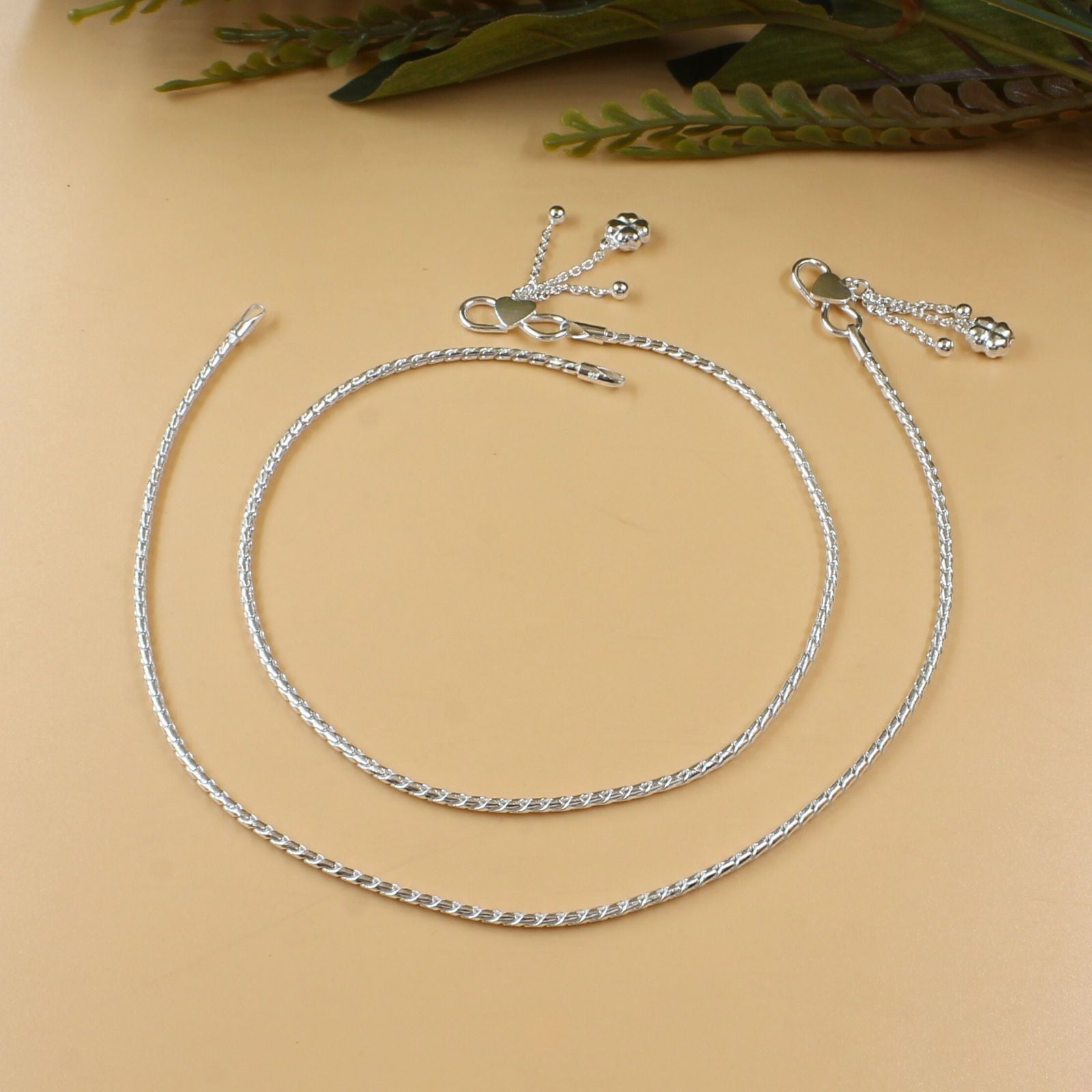 Elevate your style with this pair of girlish 925 sterling silver chain anklets, each measuring 10.3 inches. Crafted for comfort and durability, these anklets offer a delicate yet durable accessory perfect for daily wear or special occasions. Their classic design complements any outfit, adding a subtle touch of elegance to your look. Embrace effortless charm and versatility with this beautiful anklet set.