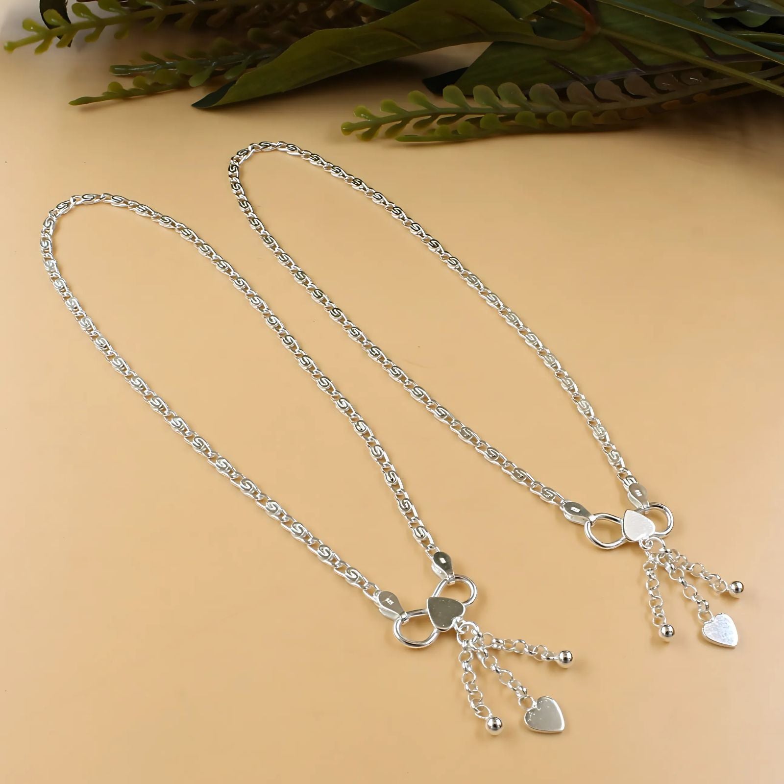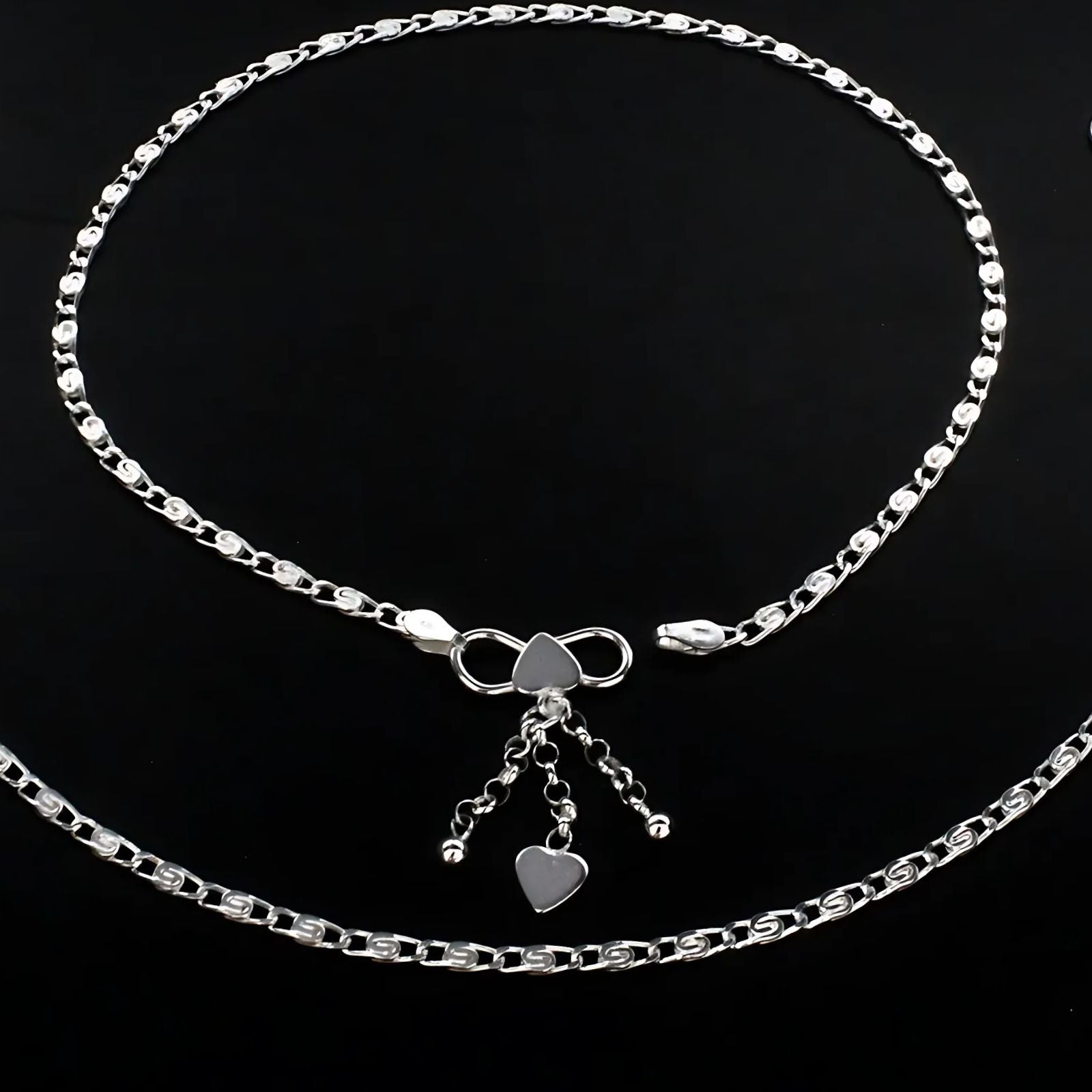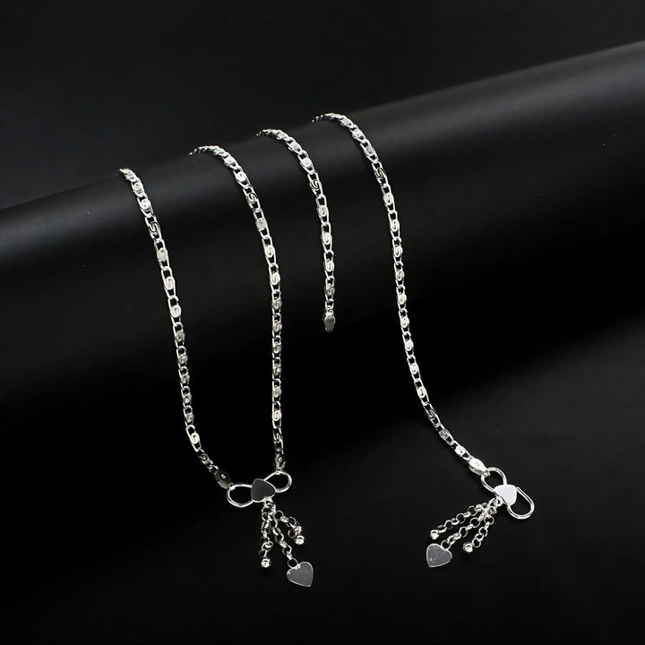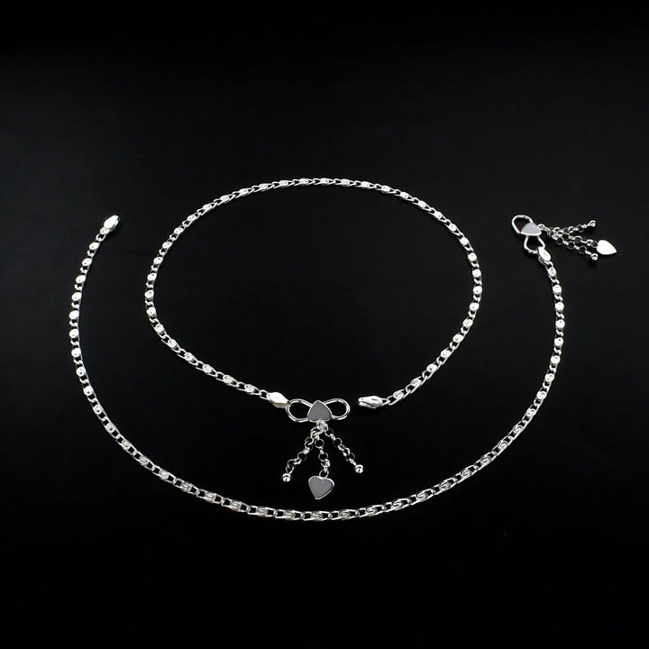 This unique and trendy pair of 925 sterling silver charm chain anklets for women, measuring 10.3 inches, offers a stylish accessory with a modern touch. Crafted for both comfort and durability, these anklets add a charming sparkle that complements any outfit. Ideal for daily wear or gifting, they celebrate your individual style with subtle elegance.