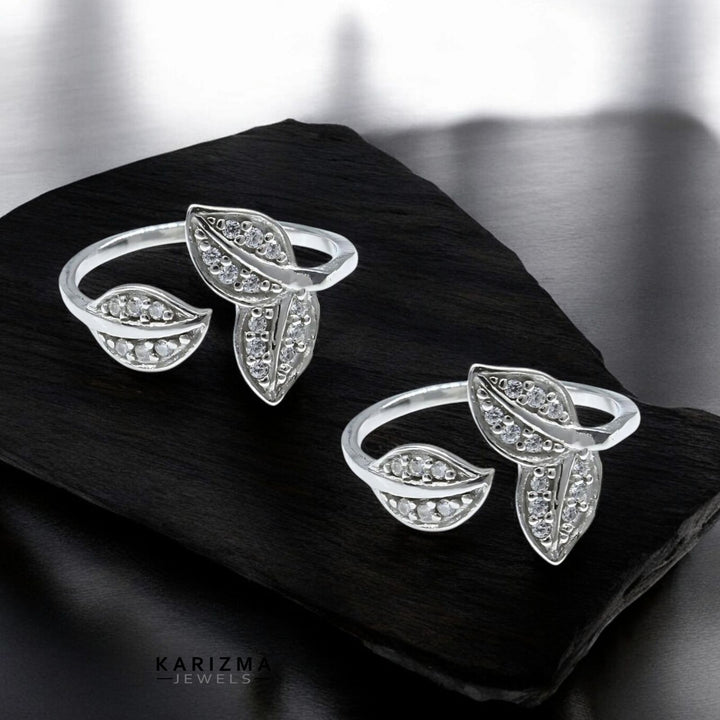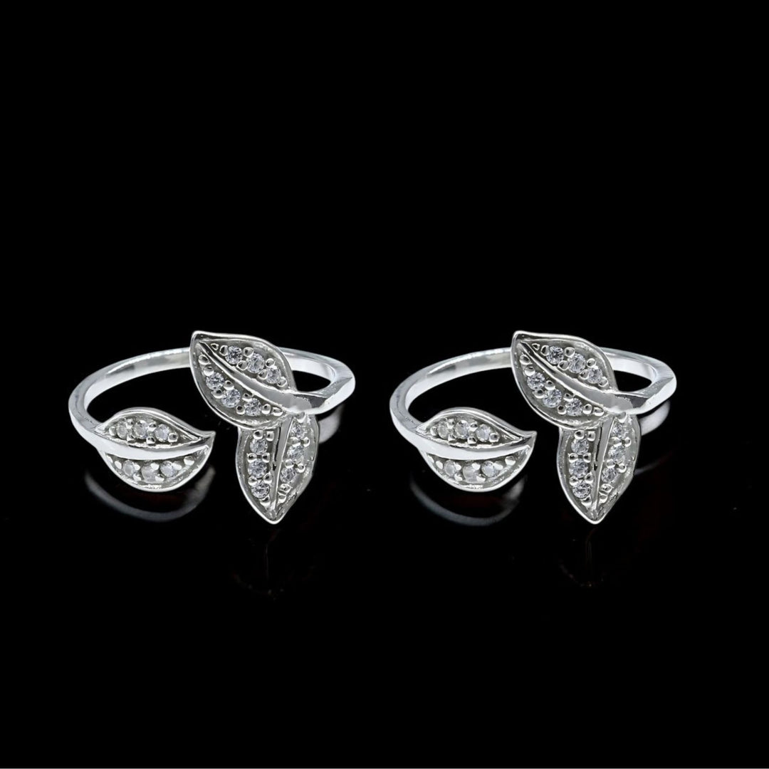 Enhance your style with these elegant and versatile 925 Real Sterling Silver Toe Rings. The intricate leaf design and shimmering white CZ stones add a touch of sophistication to any look. Perfect for Indian women who want to elevate their style game. Sold as a pair for a complete look.