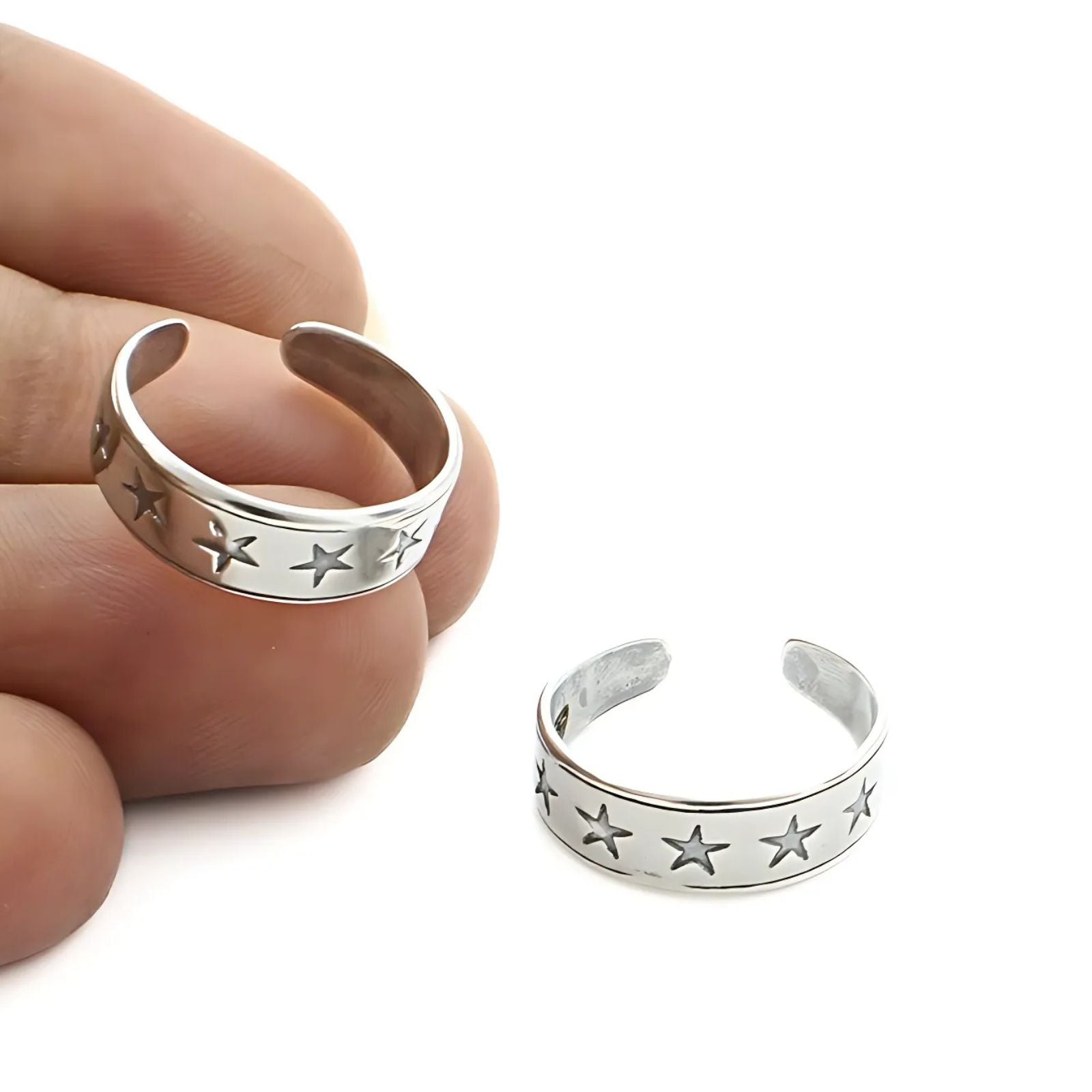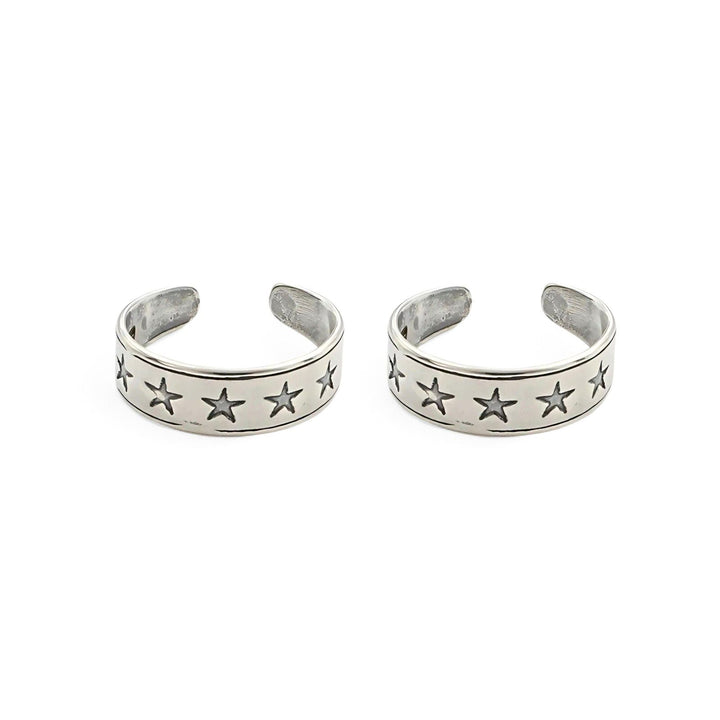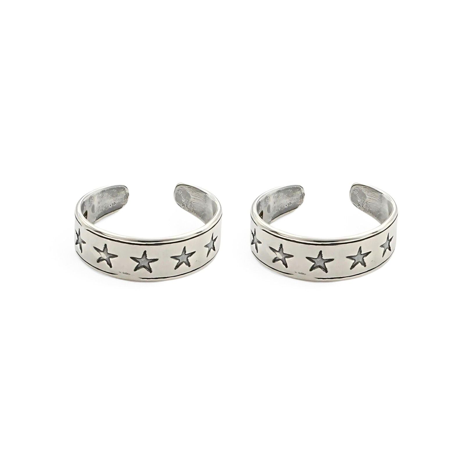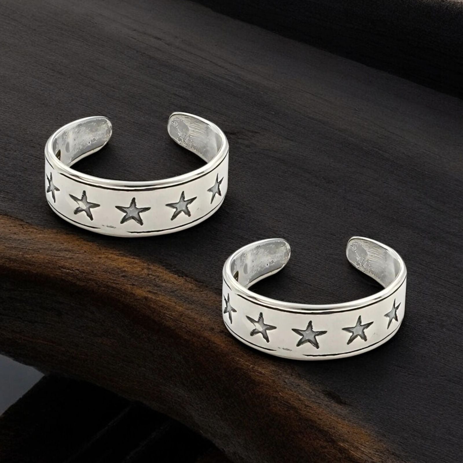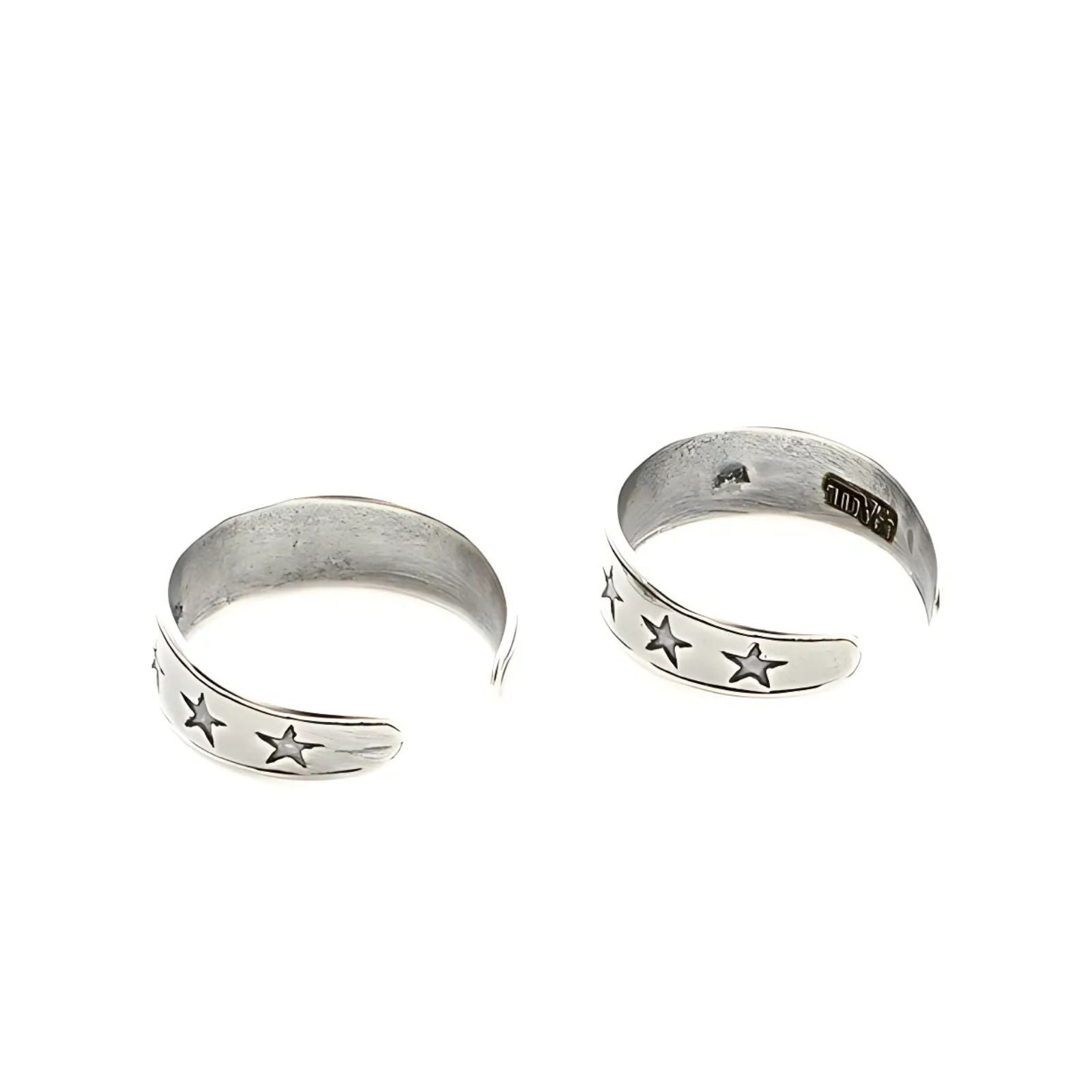 This pair of oxidized 925 sterling silver toe rings features a charming star design, adding a whimsical touch to your look. Crafted for comfort and durability, they provide a delicate accent that brightens your style effortlessly. Perfect for everyday wear or special occasions, these toe rings bring a subtle sparkle to your feet.