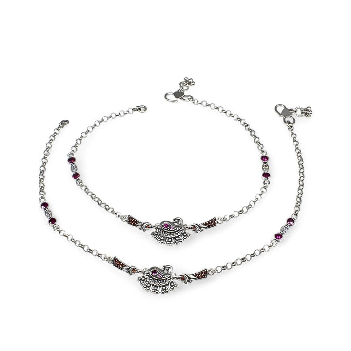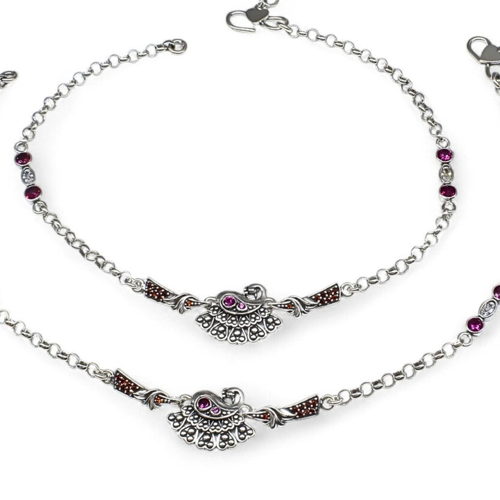 925 Sterling Silver Multi CZ Oxidized divine peacock design Anklet Pair 10.3"