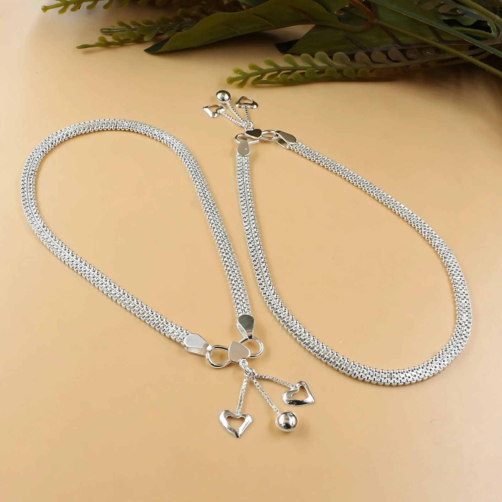 This pair of 925 sterling silver handmade chain anklets for women, measuring 10.3 inches, showcases expert craftsmanship and a delicate design. Comfortable for daily wear, these anklets add a subtle, elegant accent to any outfit. Durable and thoughtfully crafted, they make a meaningful gift and a beautiful addition to your jewelry collection.