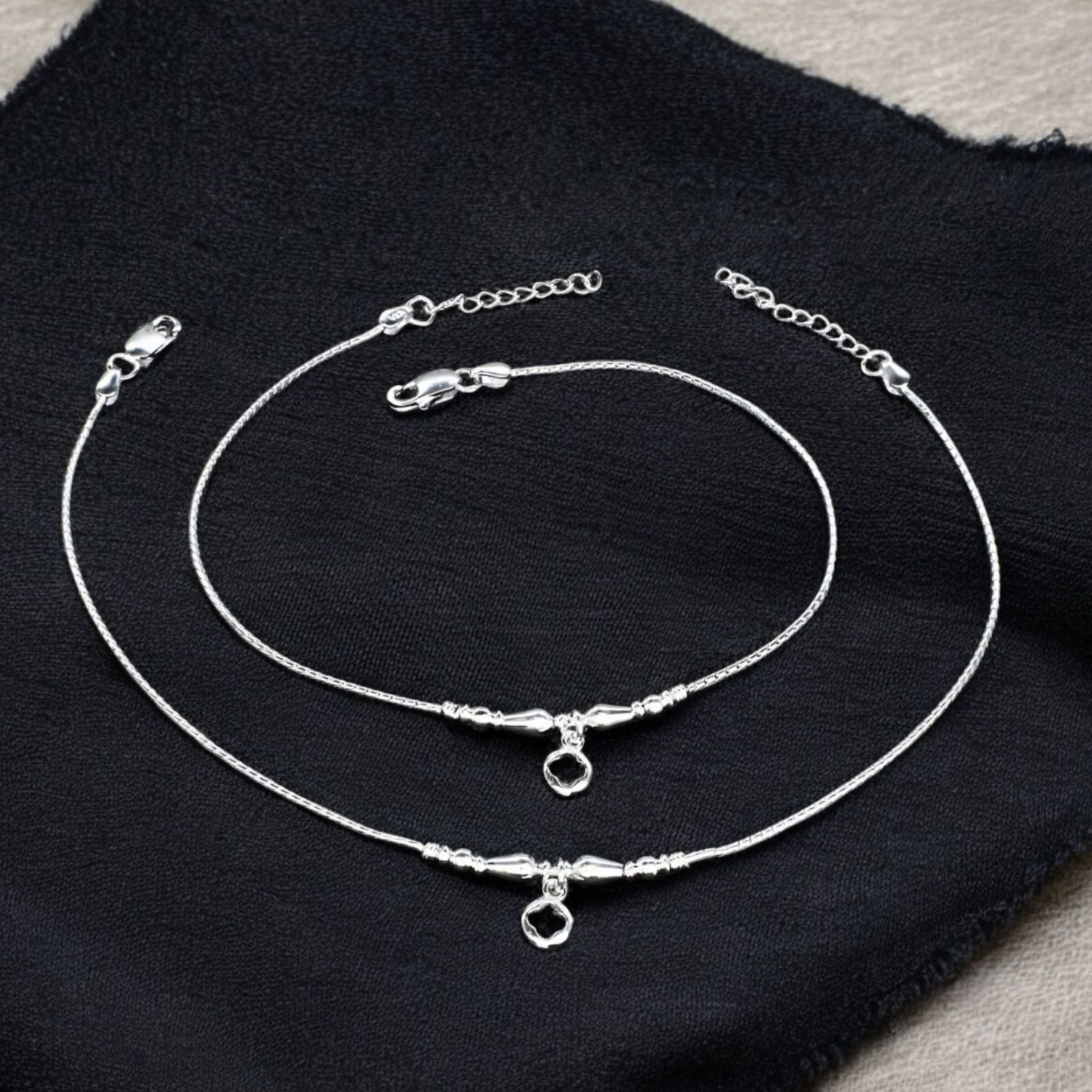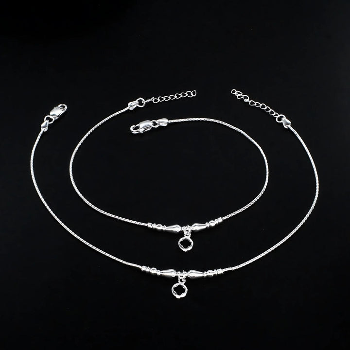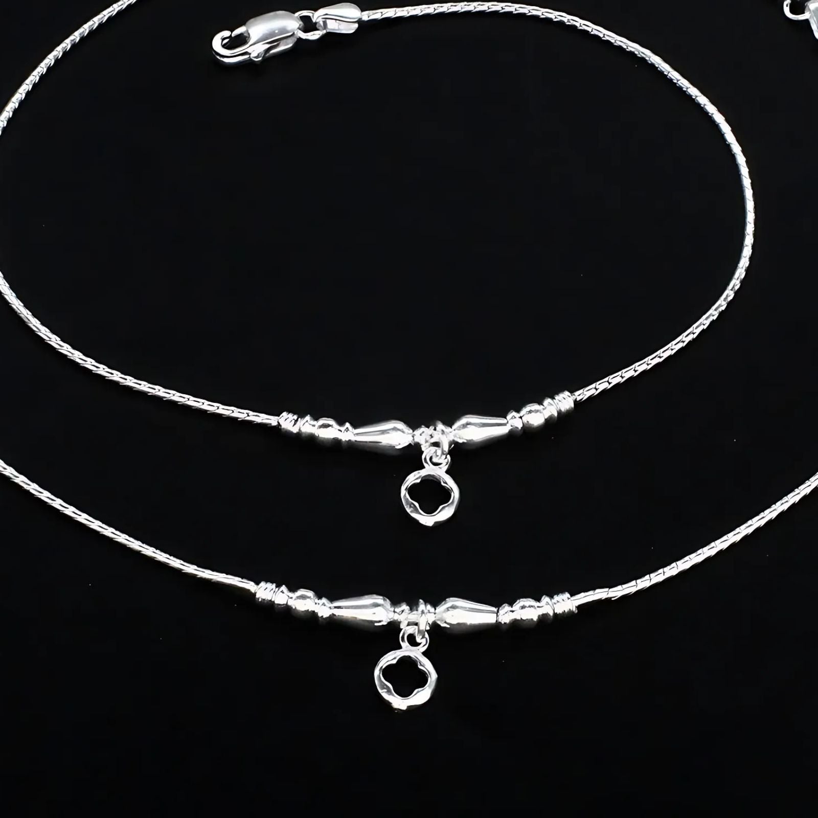 This real silver anklet pair, sized at 10.5 inches, combines style and comfort for a charming addition to your jewelry collection. Designed with a girlish flair, these anklets are perfect for everyday wear, adding a subtle sparkle that complements any outfit with ease.