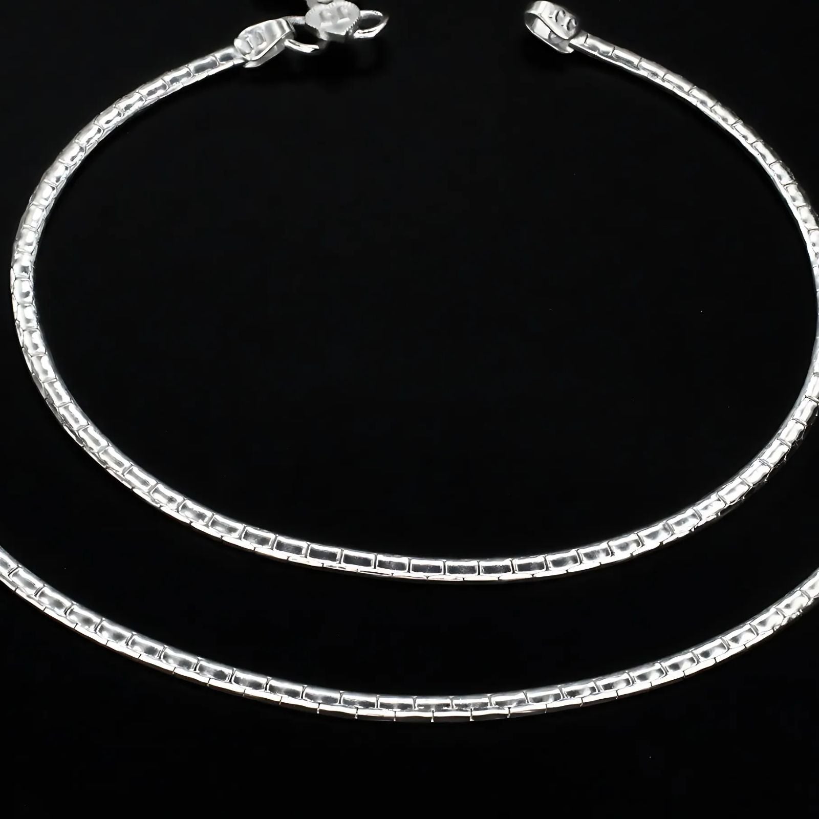 This real silver anklet pair, measuring 10.3 inches, is designed for women who want a stylish yet comfortable daily accessory. Its delicate chain adds a subtle shine that complements any outfit, making it perfect for everyday wear. Crafted to support your active lifestyle, these anklets blend durability with elegance to enhance your personal style effortlessly.